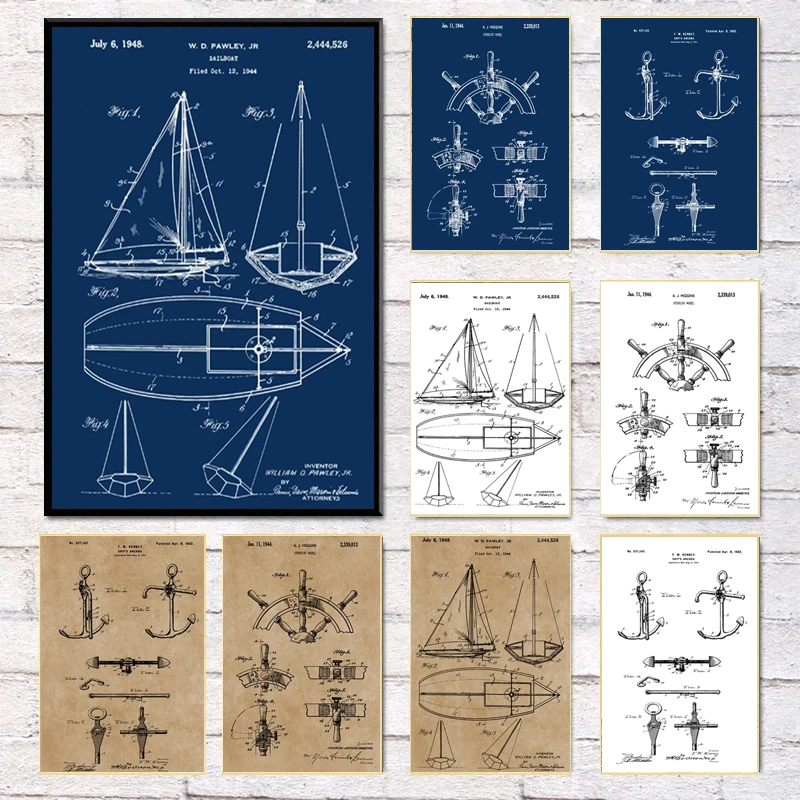 Винтажный постер с парусной лодкой и патентной печатью, дождевая Картина на холсте с изображением морской звезды icon star icon star icon star icon star icon star