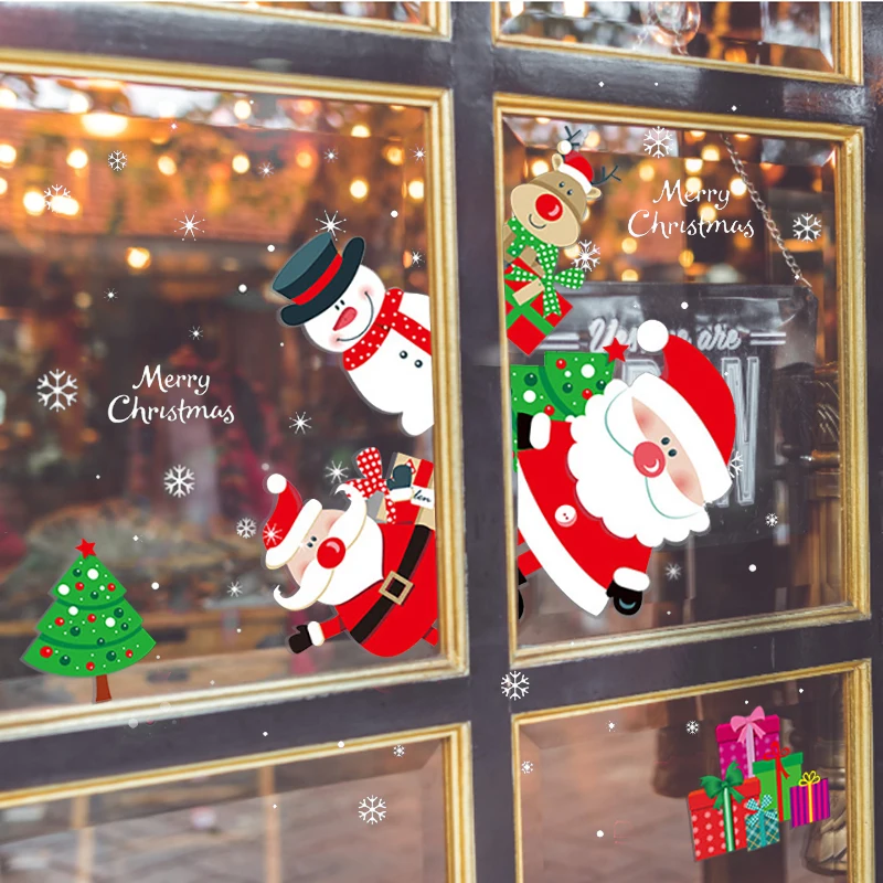 Используется для рождества и нового года, милые Мультяшные наклейки для стеклянных окон, рождественские подарки, бумажные наклейки