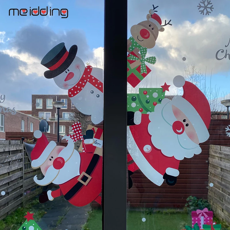 2021 веселое рождественское окно большие наклейки рождественские украшения для дома Настенная стеклянная наклейка 2022 новогодние наклейки декор natal Noel