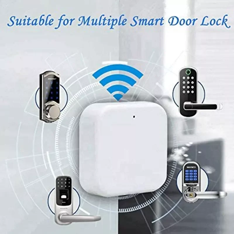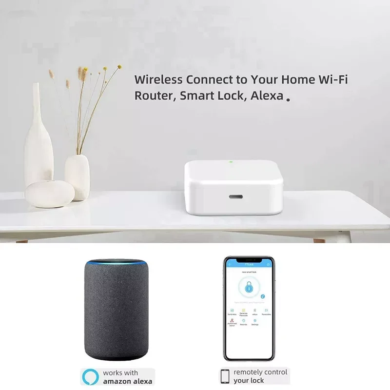 Шлюз Wi-Fi может соединять столько замков, сколько вы хотите. Рекомендуемое расстояние между шлюзом и умным дверным замком составляет не более 32 футов (10 метров).