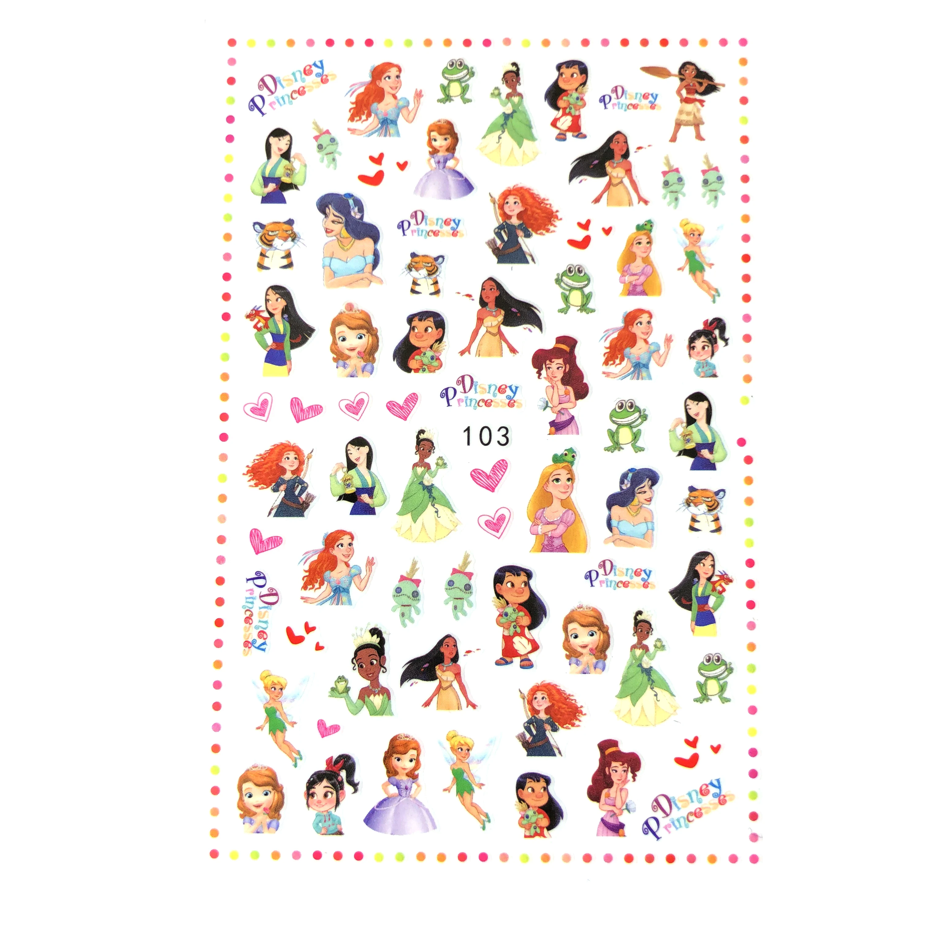 1 шт. стикер для дизайна ногтей с героями мультфильмов Диснеевская Принцесса Стич украшение для ногтей наклейка Микки цвет самоклеющийся слайдер для ногтей