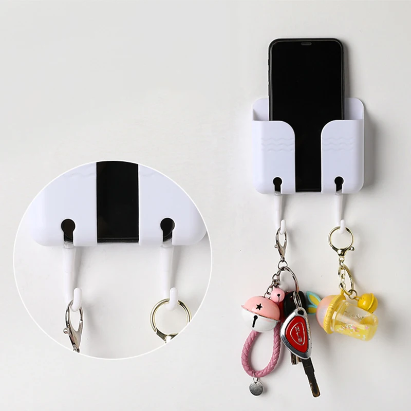 Настенный держатель для зарядки, ящик для хранения пультов дистанционного управления, смонтированный органайзер, с крючками, мобильный телефон