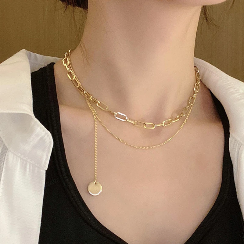 Женская многослойная цепочка на шею, винтажное толстое ожерелье зол...