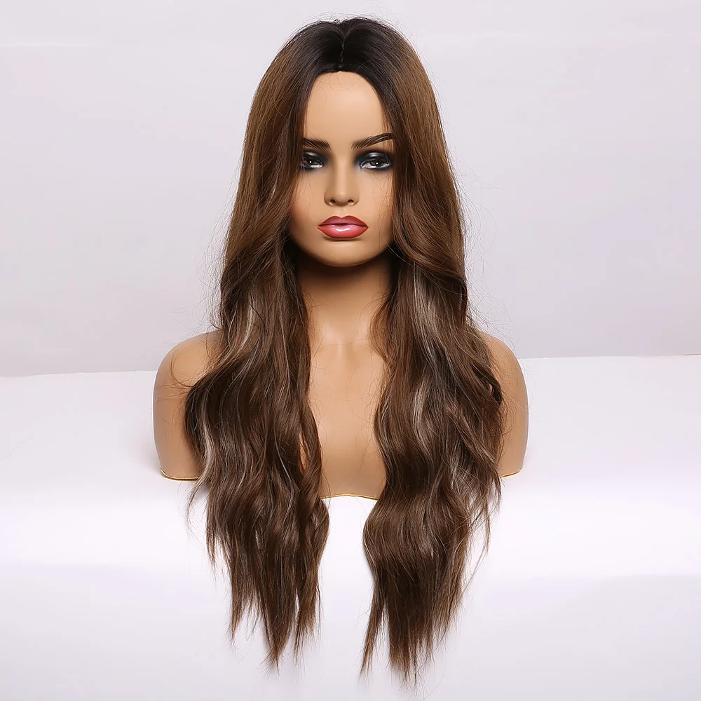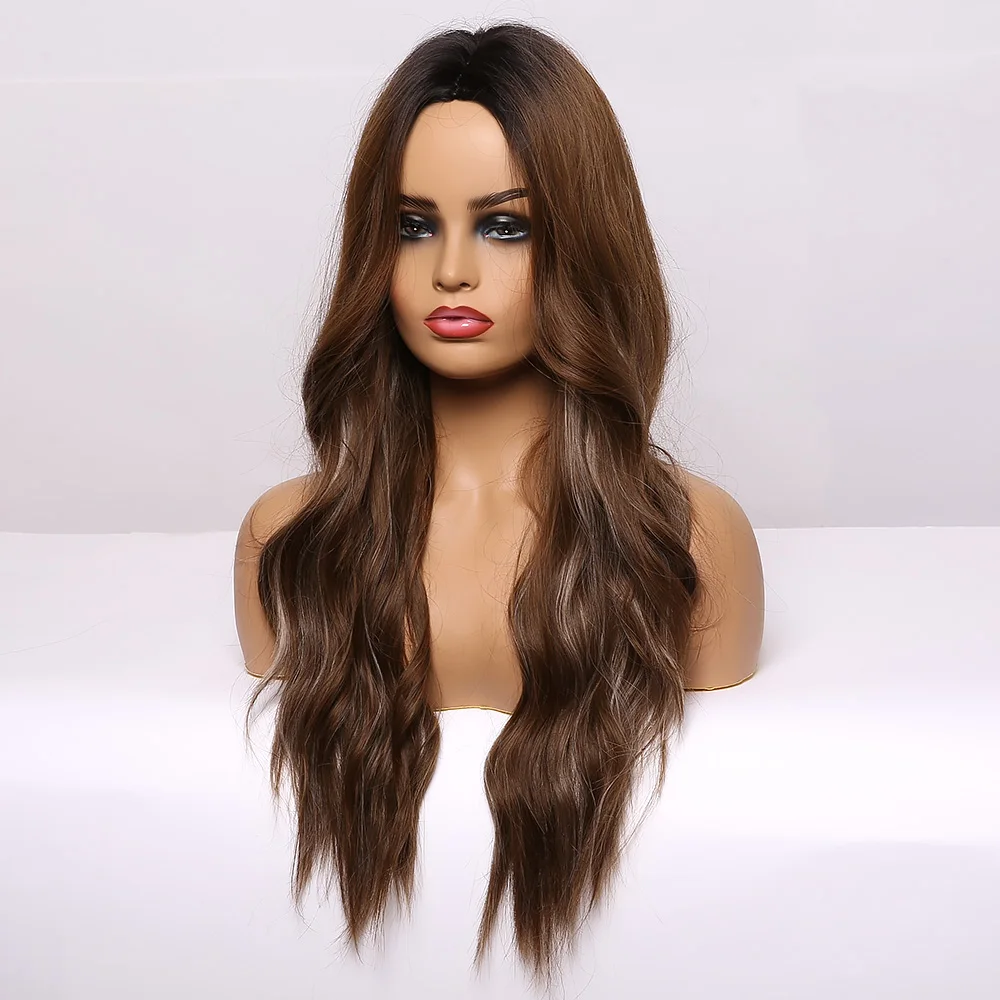Парик для женщин с длинными волнистыми волосами Омбре черный коричн...