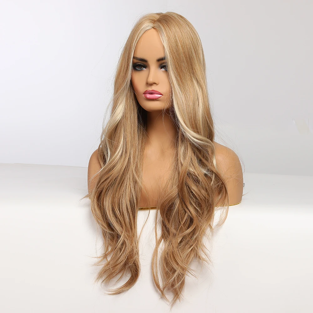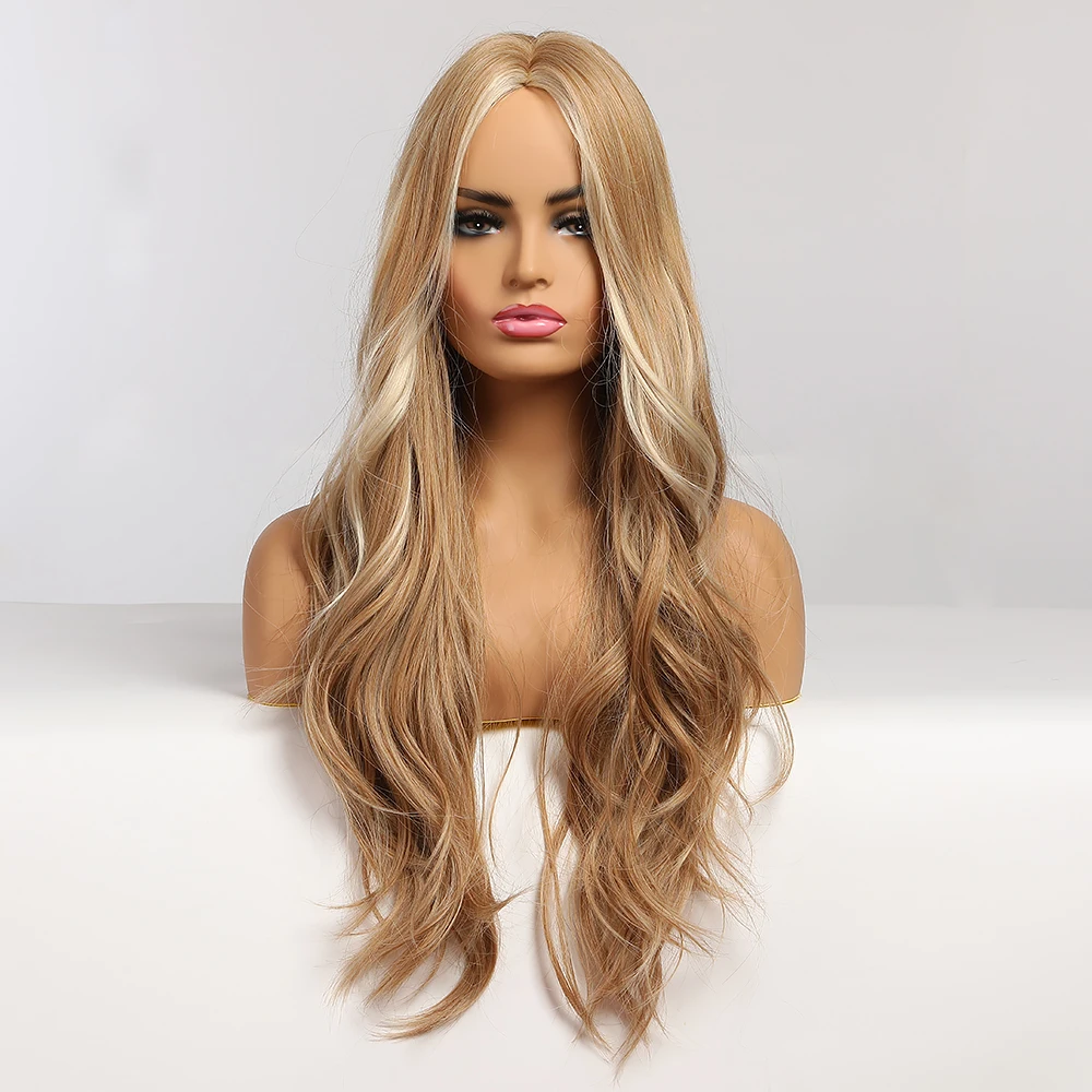 Длинные волнистые синтетические парики блонд с прямыми краями, пари...