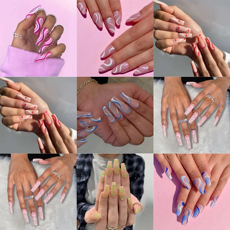 Искусственные накладные ногти с полным покрытием, акриловая лампа с клеевыми слайдерами, накладные ногти, аксессуары для дизайна ногтей