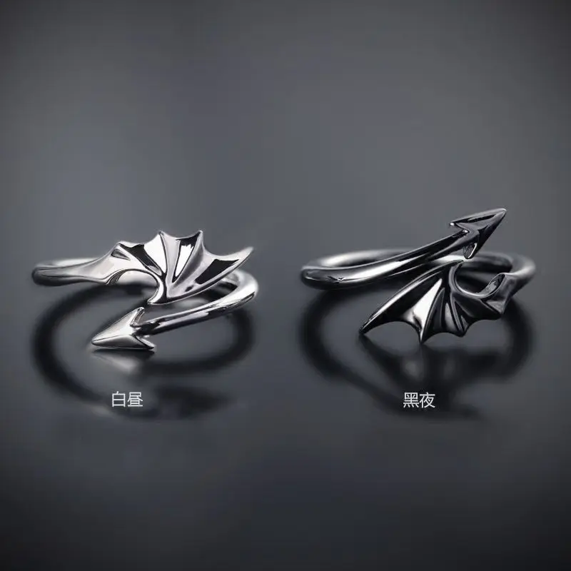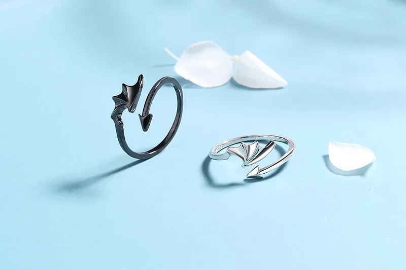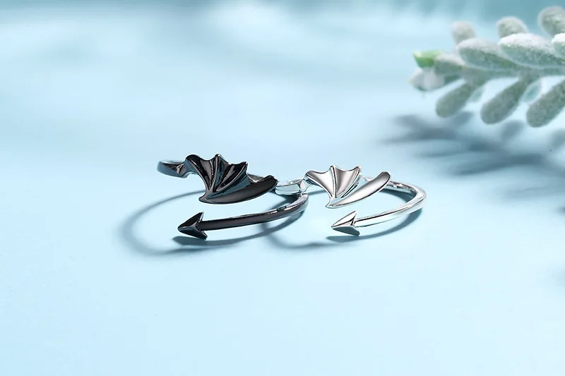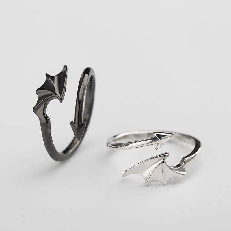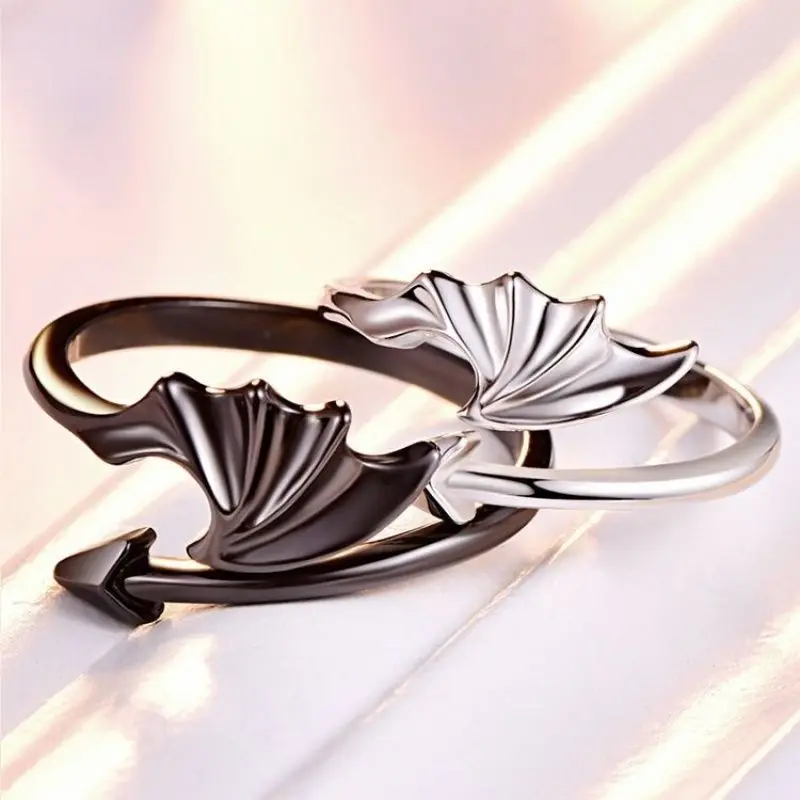 Парные кольца черного и белого цвета для влюбленных, модные панковские парные регулируемые открытые кольца с ангелом, кольца с демоном, крылья для женщин, ювелирные изделия