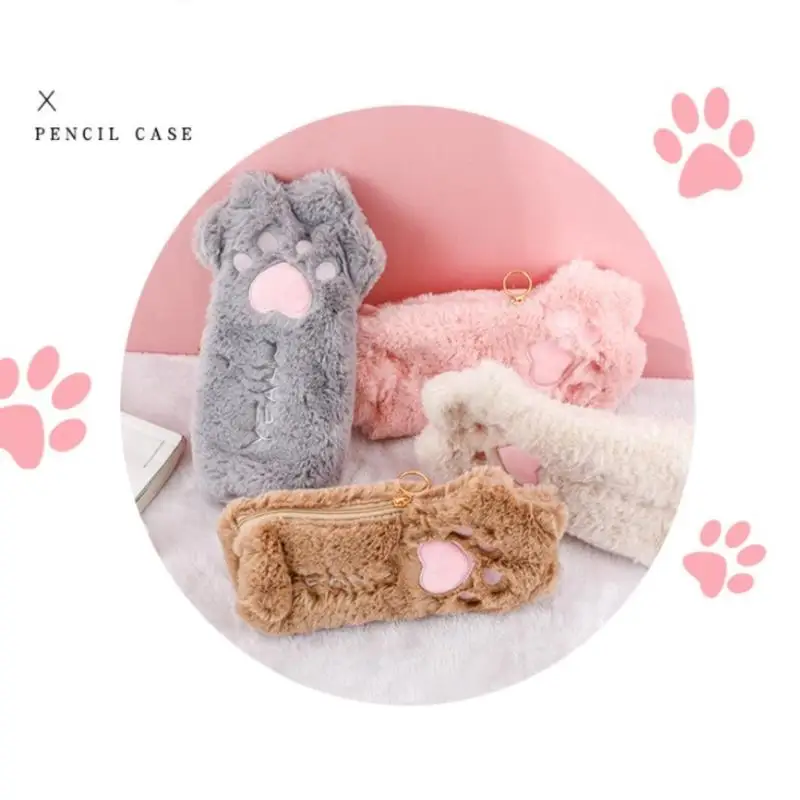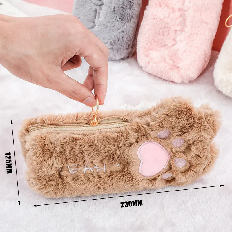 Мягкий плюшевый чехол-карандаш с кошачьей лапой для косметики, Большой Вместительный чехол-карандаш, держатель для ручки, Канцелярский Органайзер Kawaii, канцелярские принадлежности