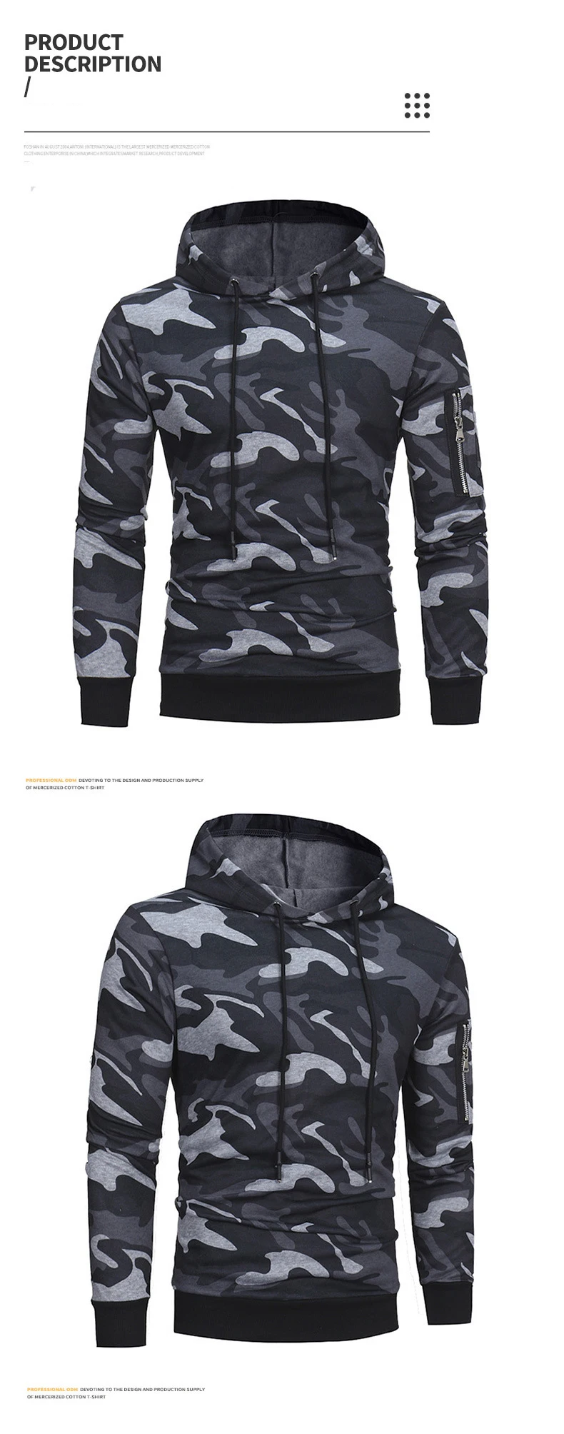 Мужские толстовки Камуфляжный Топ хлопковая дышащая Толстовка пулов...