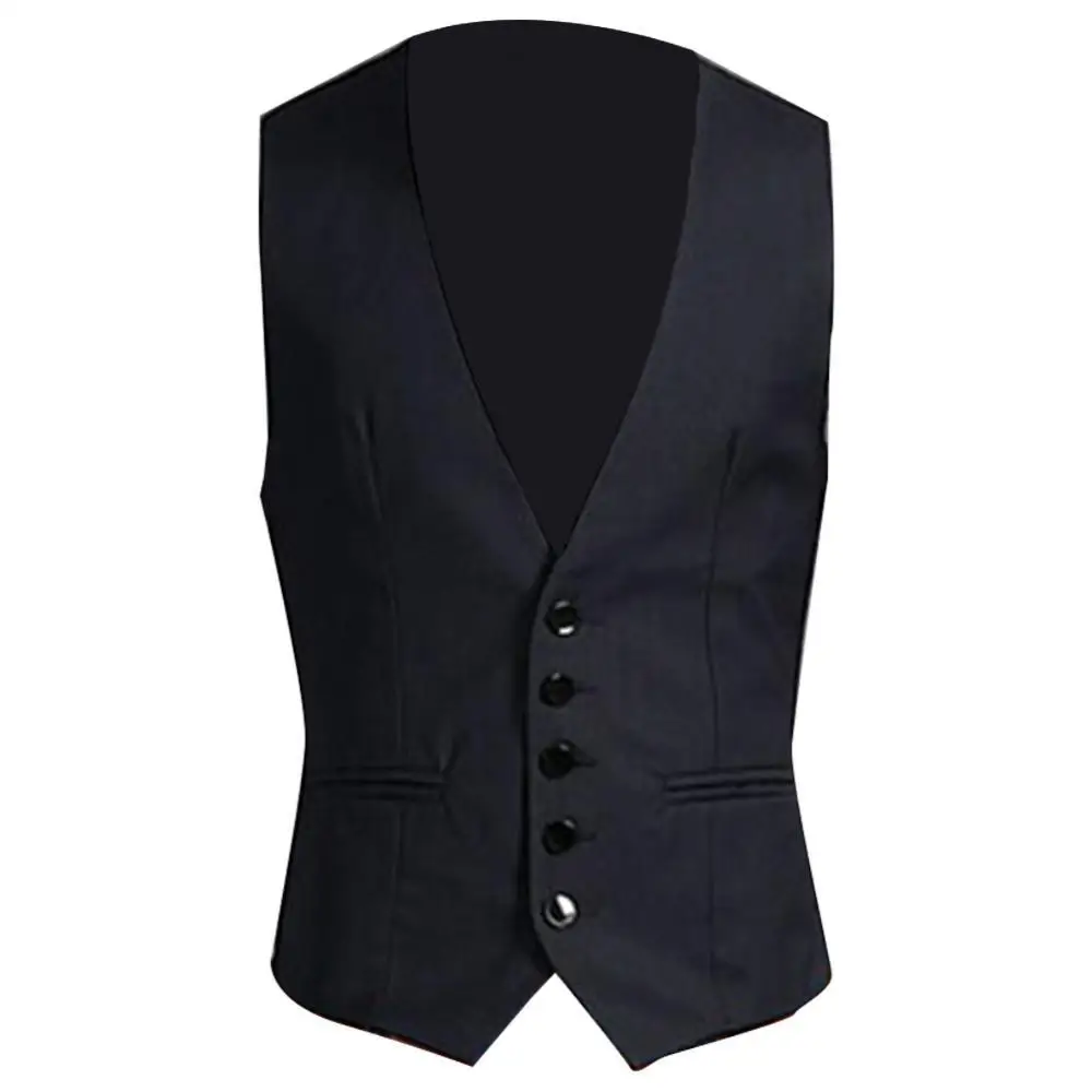 Жилет мужской облегающий без рукавов, деловой однотонный жилет с V-образным вырезом, на пуговицах, с карманами