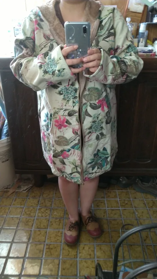 Пальто женское зимнее на молнии, с листьями и цветочным принтом, с ...