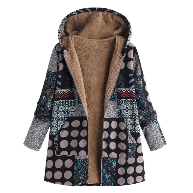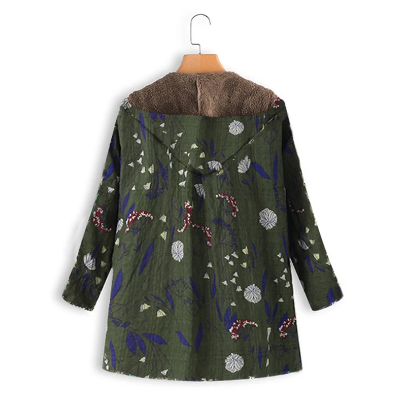 Женское плюшевое пальто, зимнее теплое пальто на флисе с цветочным принтом и карманами, парка на молнии, размера плюс