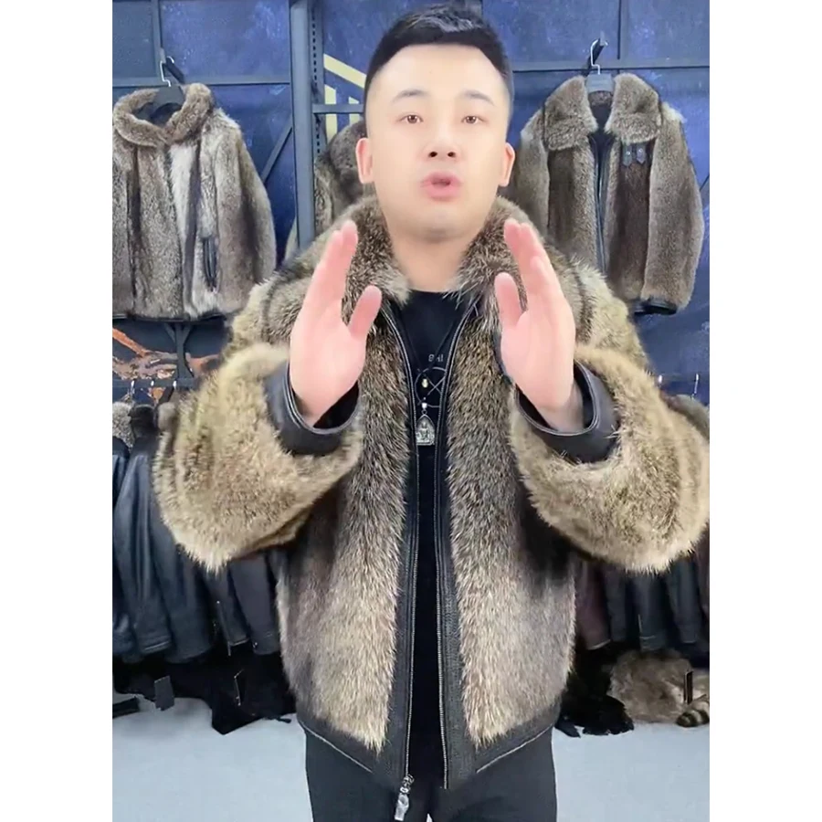 Шуба из натурального меха енота, мужская зимняя куртка, модная повседневная верхняя одежда, Женское пальто, теплая Толстая куртка
