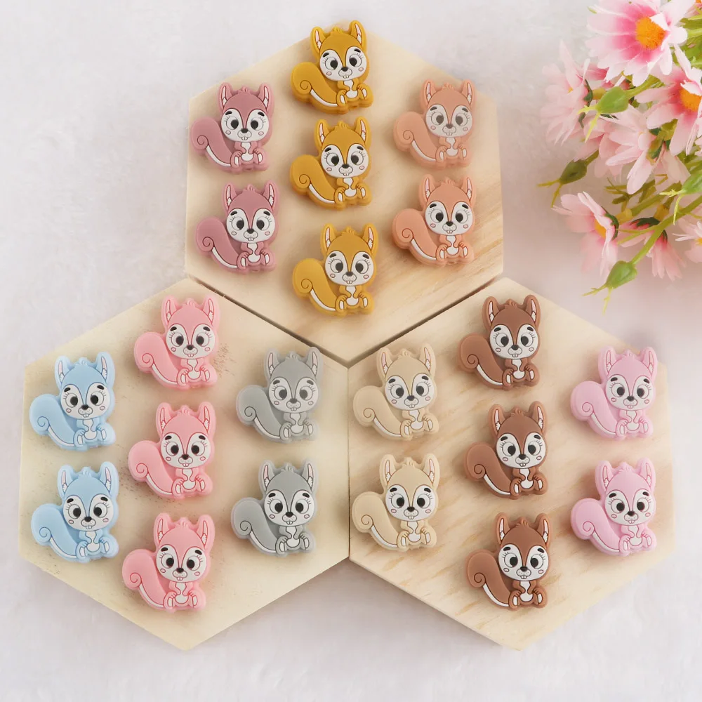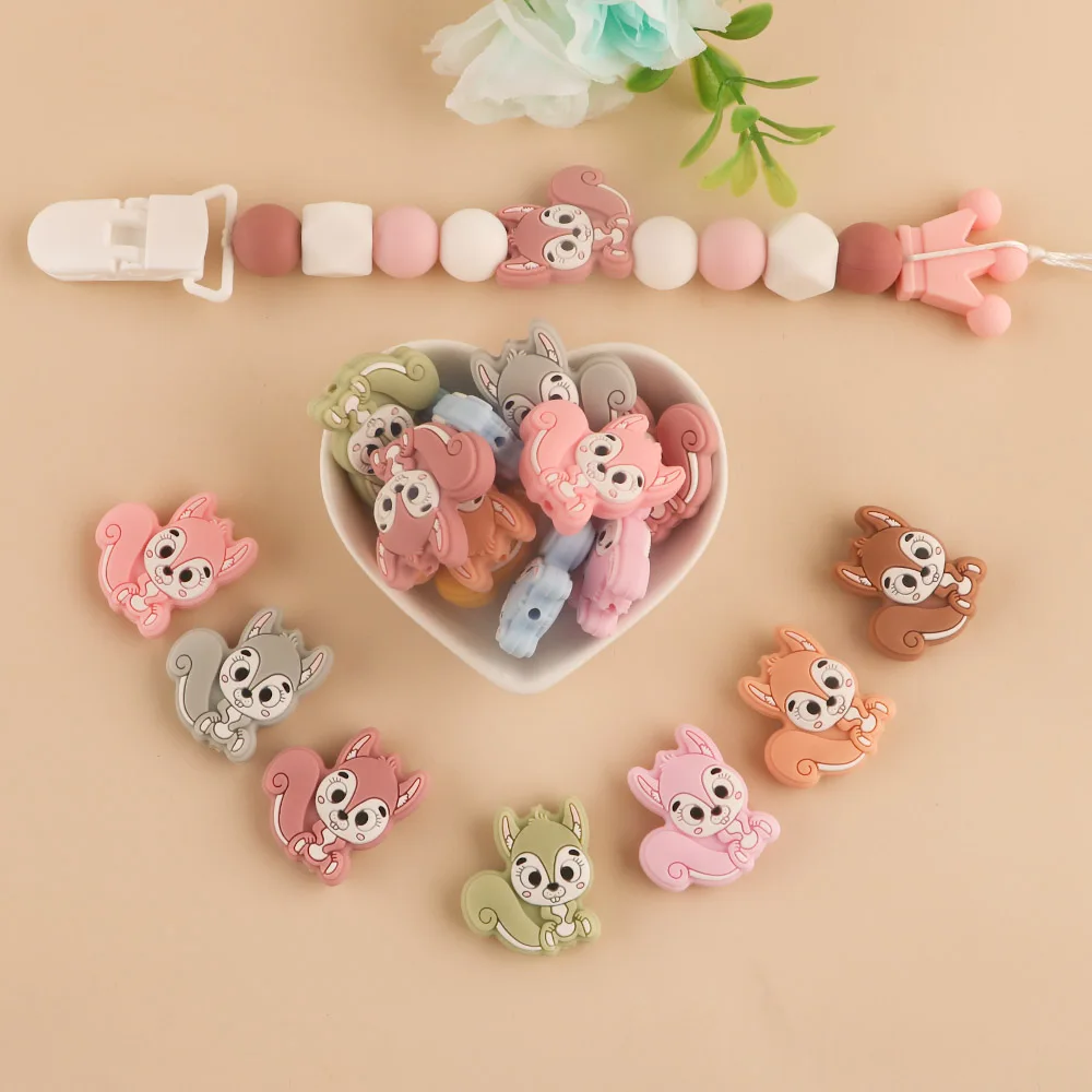 Kovict 10 шт Новые Мультяшные белки силиконовые животные бусины грызуны молярный уход прорезывание зубов кольцо DIY детские соски цепь игрушка BPA-Free