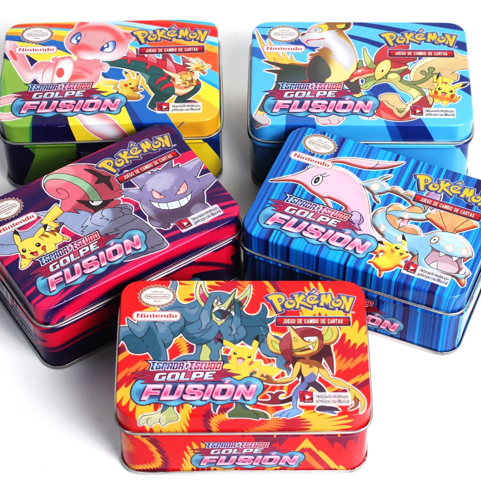 42 шт. испанские карты покемона, железная коробка, TAKARA TOMY, игры, битва, стили, коллекционные предметы, коллекционная игра, искусственная кожа, подарок для детей
