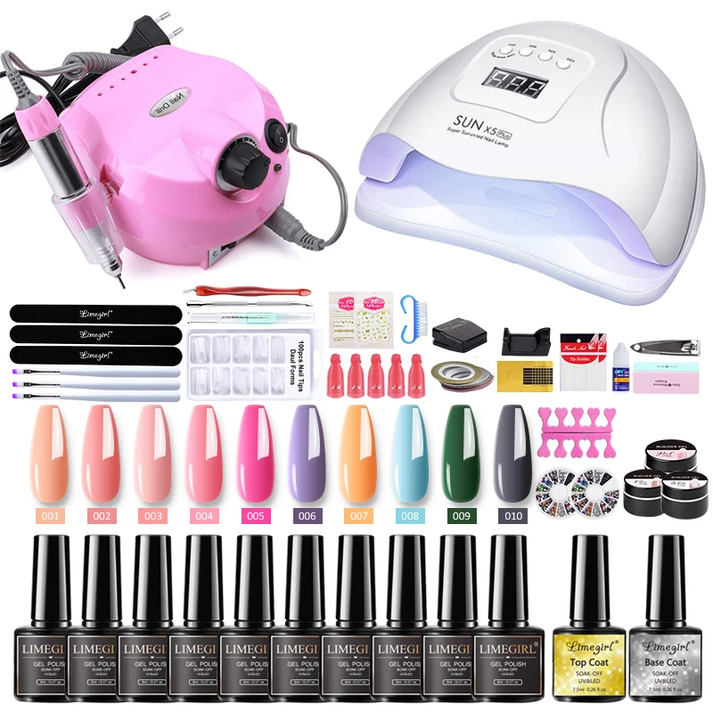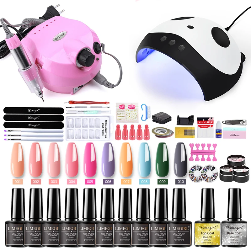 Маникюрный набор со светодиодной лампой 120 Вт72 Вт54 Вт, маникюрный набор с машинкой 35000 обмин для обработки ногтей, 10 цветов, набор инструментов для УФ-гель-лака