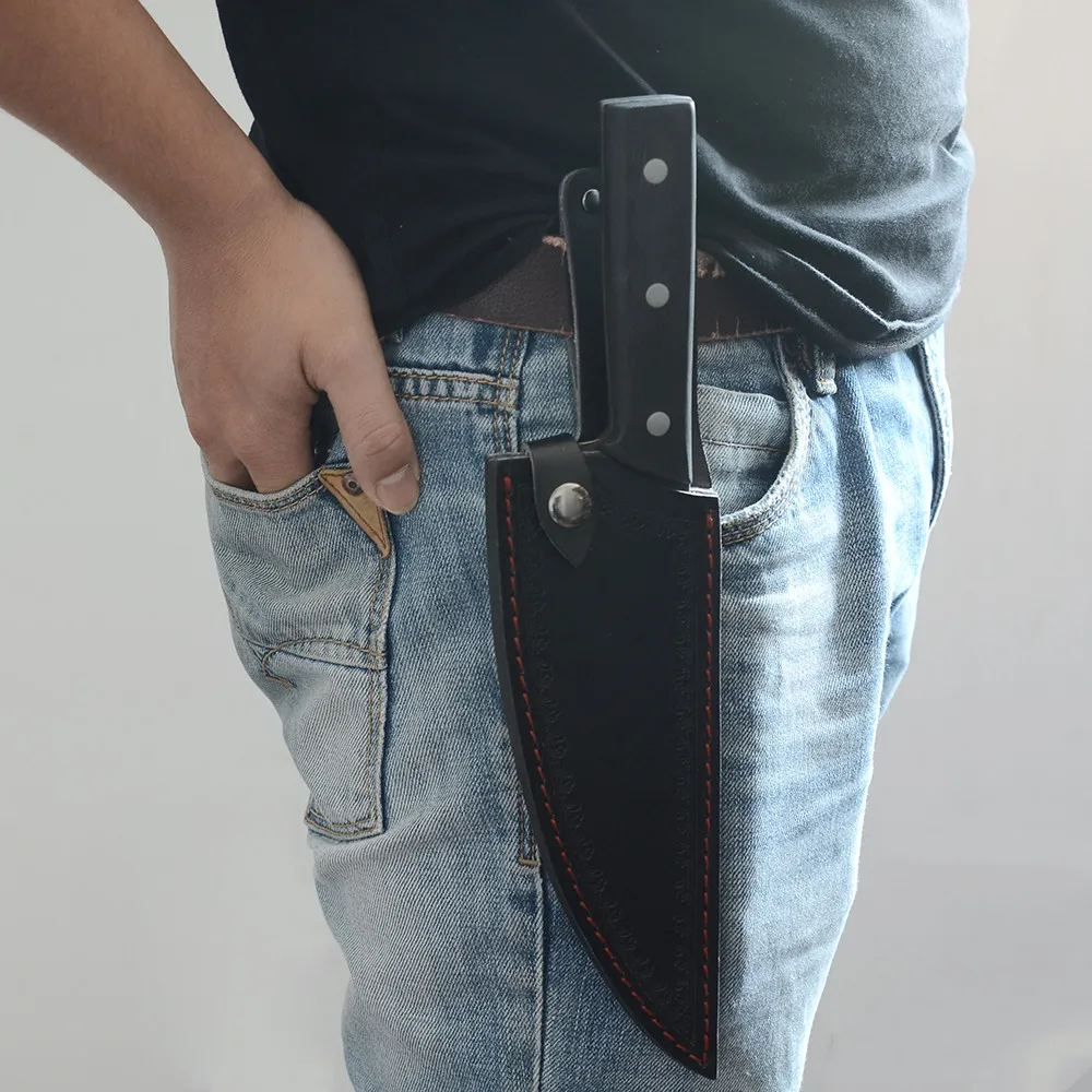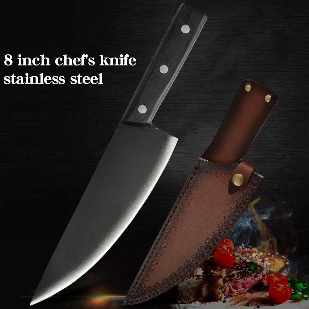 Нож шеф-повара из нержавеющей стали, 8 дюймов, с кожаным чехлом