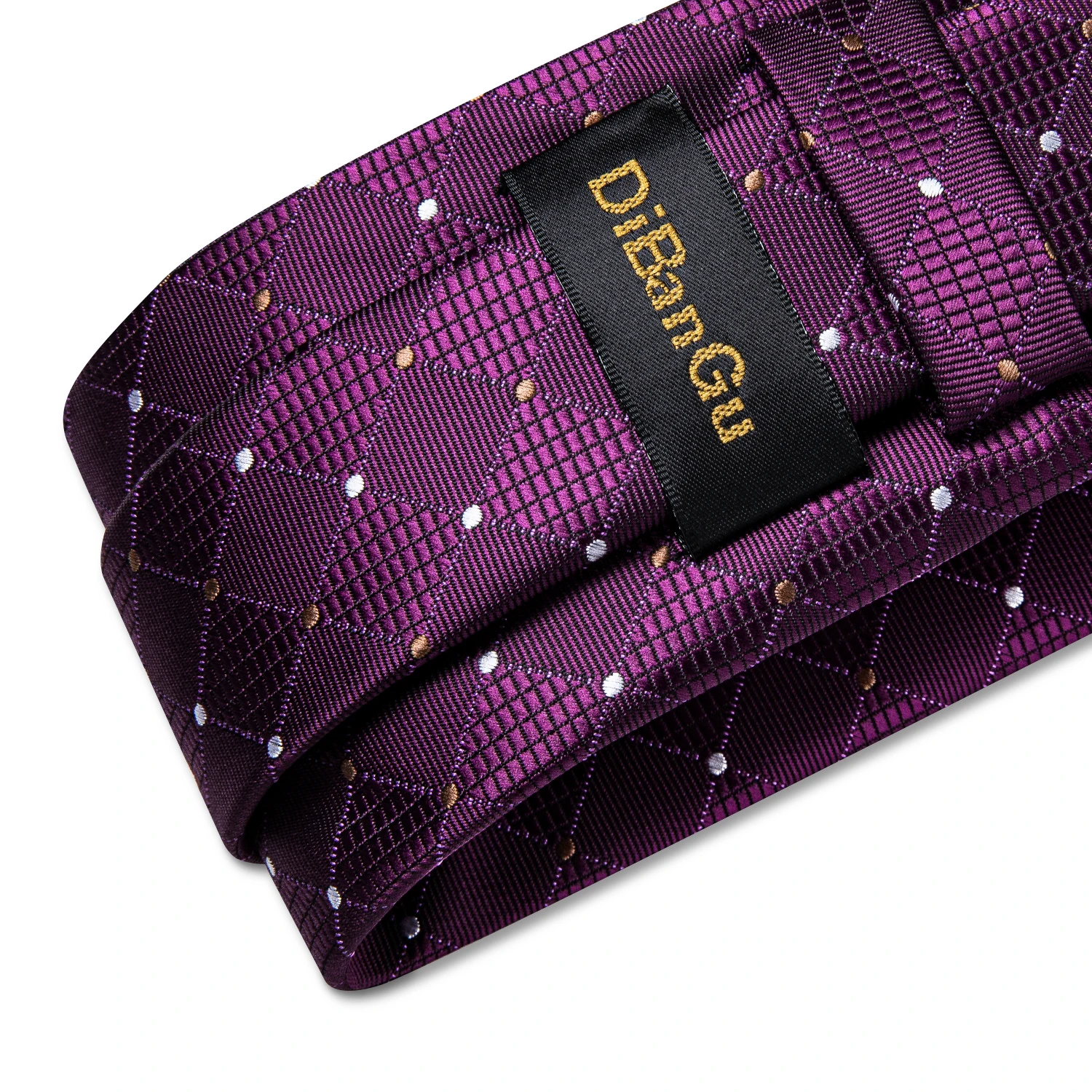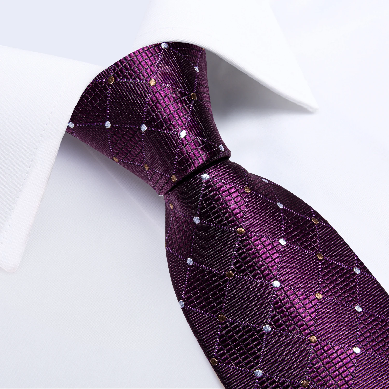 Фиолетовые Свадебные Галстуки для Для мужчин 8 см широкая жаккардовая плетеная клетка, горошек Шелковый галстук носовой платок Cuffinks с золотым галстуком-бабочкой прихватка с цепочкой