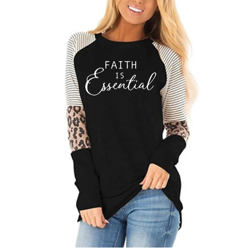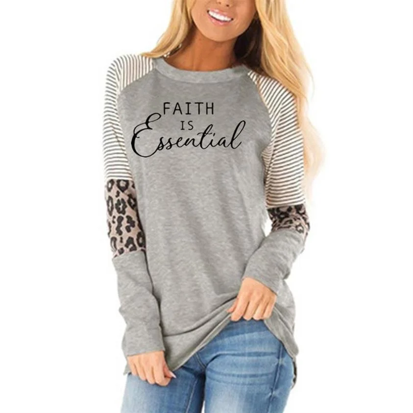 Женская футболка с длинным рукавом, леопардовым принтом и круглым в...