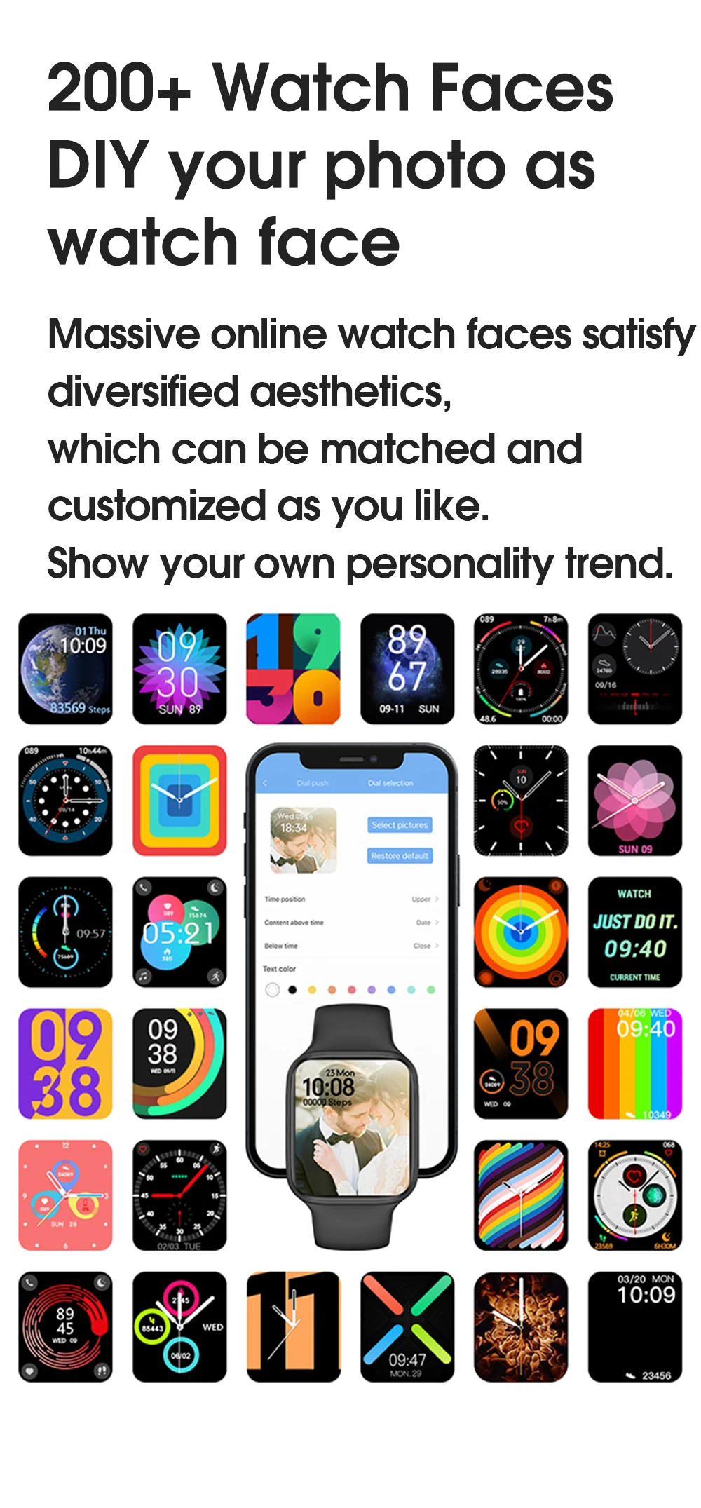 1. Следите за своим здоровьем:Пульс/кровяное давление/Монитор кислорода в крови, ЭКГ, трекер сна.2. Хороший помощник для тренировки:Шаги, расстояние, сожженные калории, спортивный режим.3. Хороший помощник для повседневной жизни:BT телефонные звонки, синхронизация уведомлений, голосовой помощник, трекер периода, пульт дистанционного управления камерой, секундомер, Bluetooth музыка, будильник, напоминание о сидячем положении, поиск моего телефона, поднятие до пробуждения, блокировка экрана пароль, индивидуальные лица и т. Д.