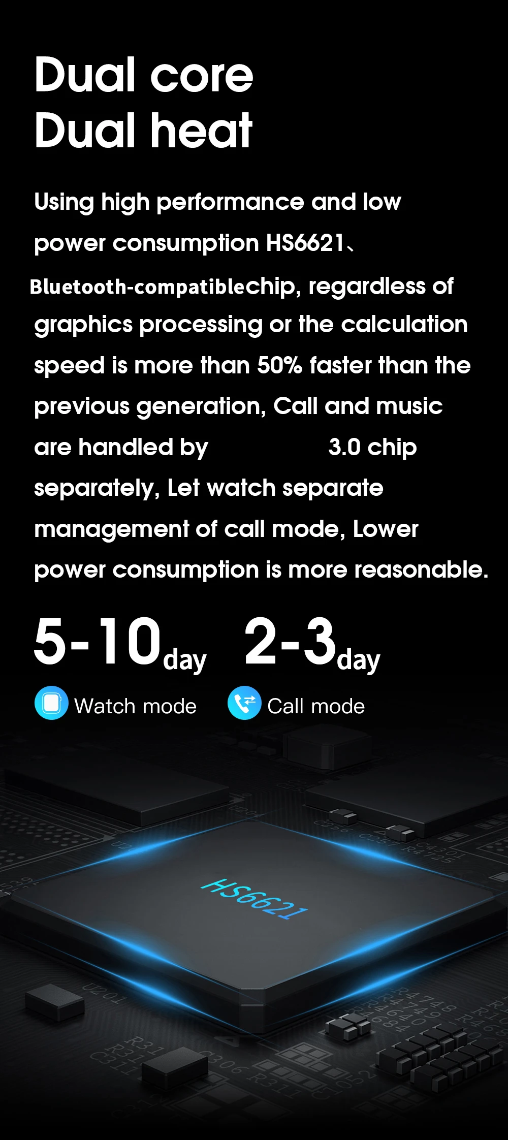 Использование высокой производительности и низкого энергопотребления hs6621.bluetooth-совместимость, независимо от графической обработки или скорости расчета более чем на 50% быстрее, чем у предыдущего поколения, вызова и музыки. Чип 3,0Обрабатываются отдельно, позволяют смотреть раздельное управление режимом вызова, более низкое энергопотребление является более разумным