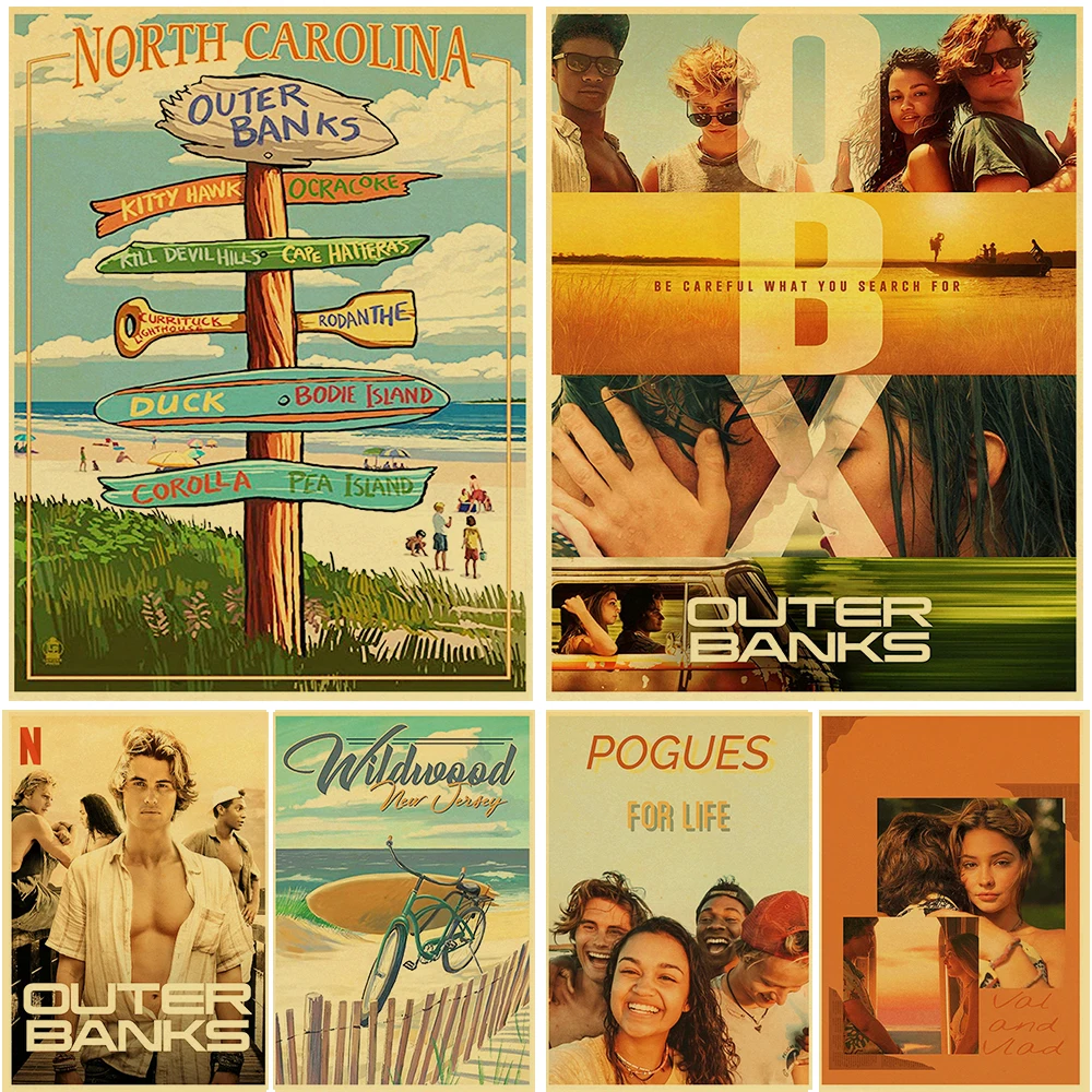 Купите три и получите один бесплатно, постер с изображением внешних берегов, пляжа, анимации, коричневая бумага, винтажный декор для гостиной, спальни, кафе, бистро, Декор
