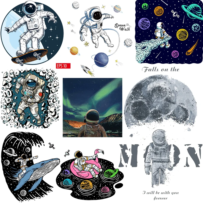 Планет астронавт теплопередача винила для одежды космические термальные наклейки на одежду Луна утюжок на перенос НЛО полосы патч Diy