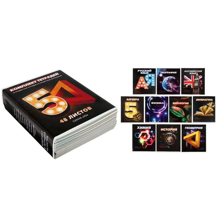 Комплект предметных тетрадей 48 листов 3D, 10 предметов со справочным материалом, обложка мелованный картон, блок 2, белизна