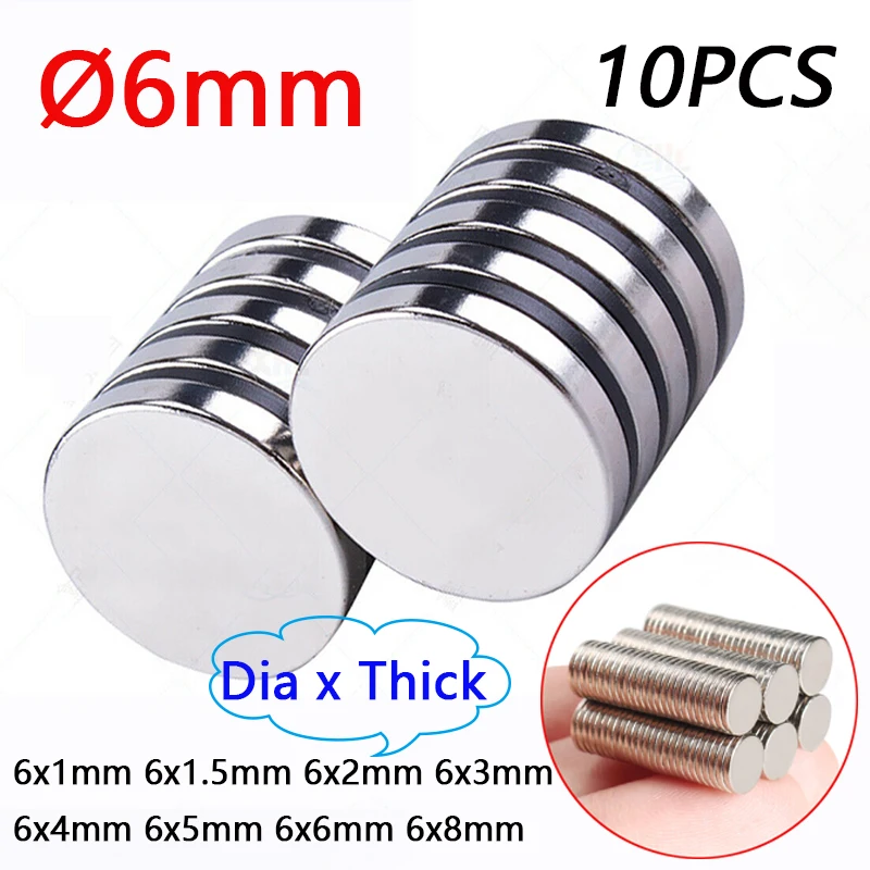 Мощный Неодимовый магнит, диаметр 6 мм, диаметр 1 1,5 2 3 4 5 6 8 мм N35, магнит из редкоземельного металла NdFeB, металла, бора, 10 шт.