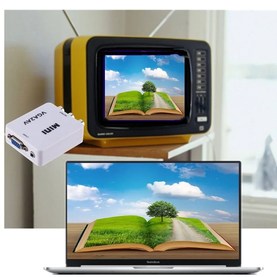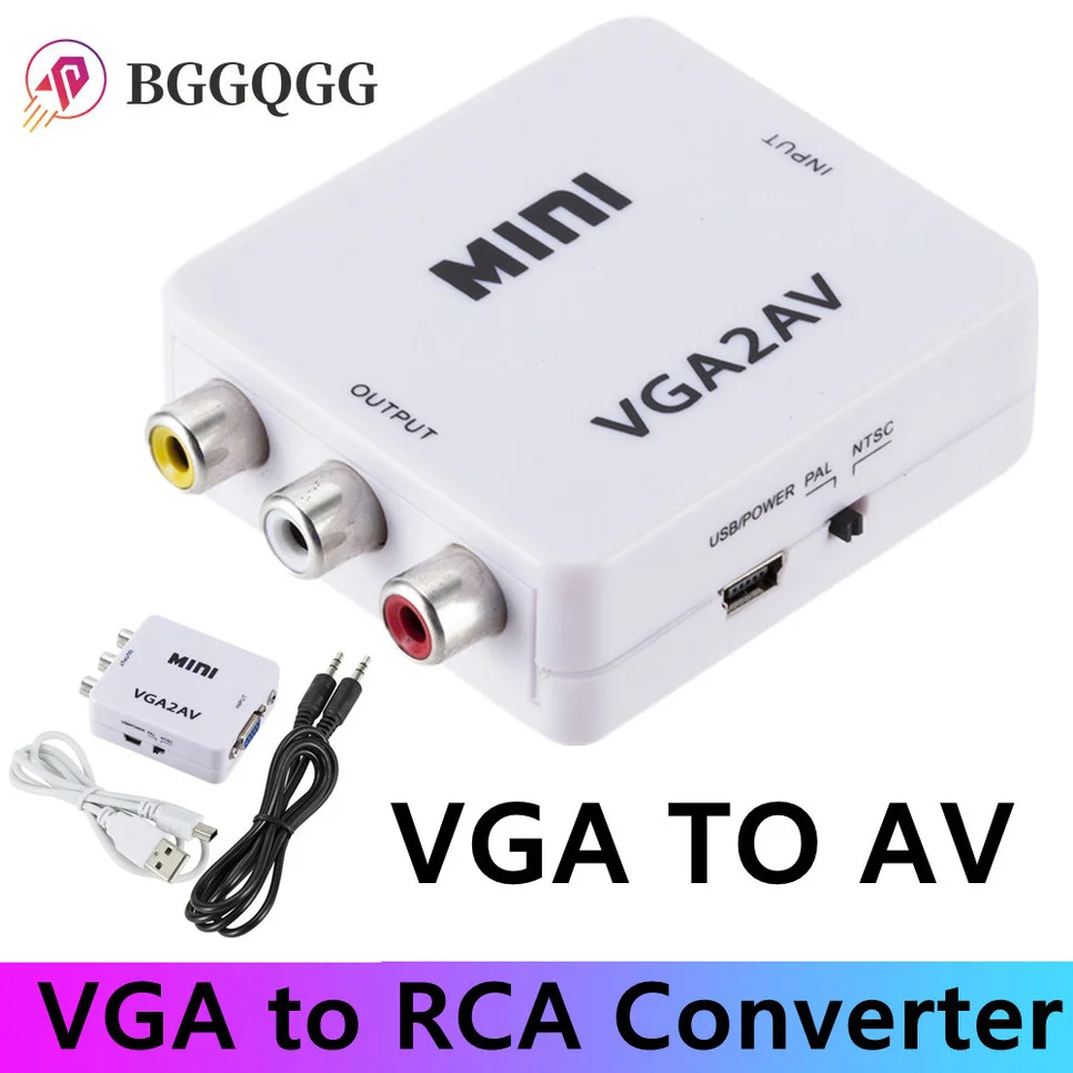 BGGQGG 1080P Mini VGA-RCA 3,5 мм AV видео конвертер адаптер с VGA 2AV CVBS Аудио конвертер для ПК HDTV