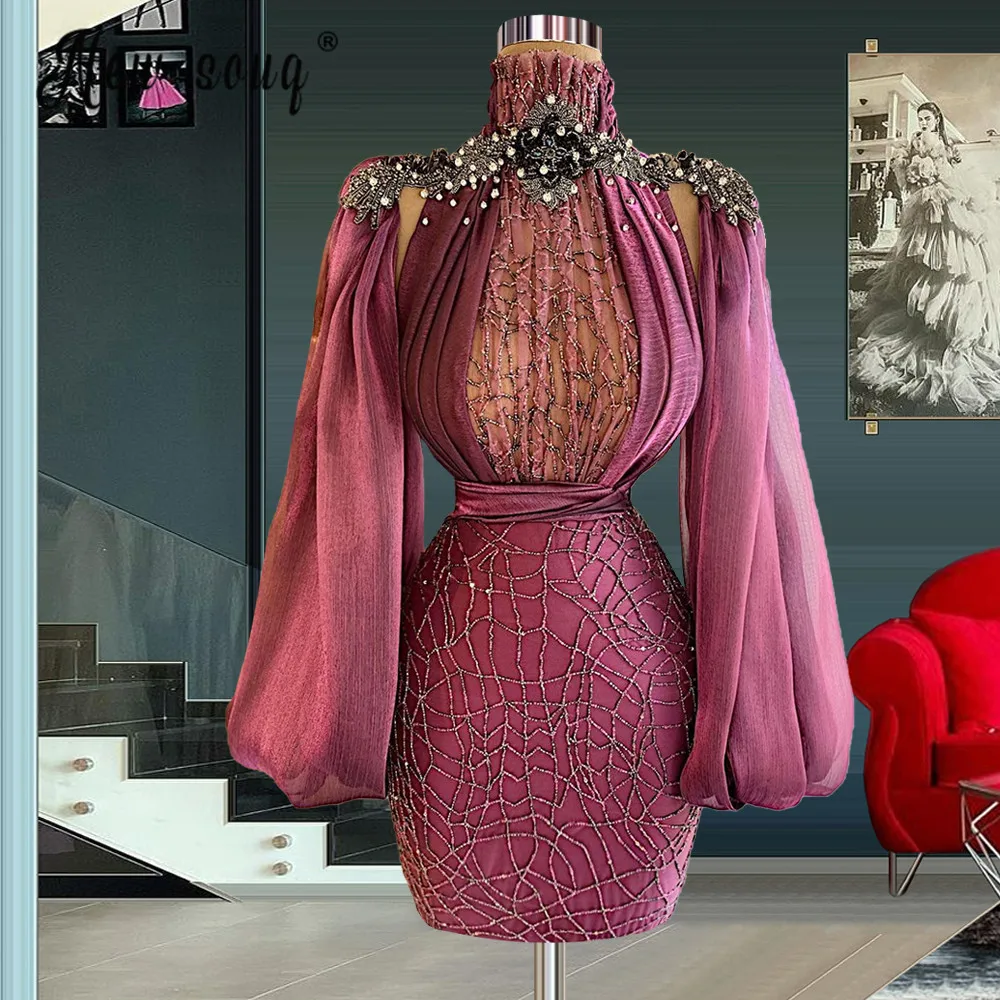 Винтажный буф рукав русалка короткое платье для выпускного вечера бисер кристаллы вечерние платья Элегантное коктейльное платье халат Femme Soiree