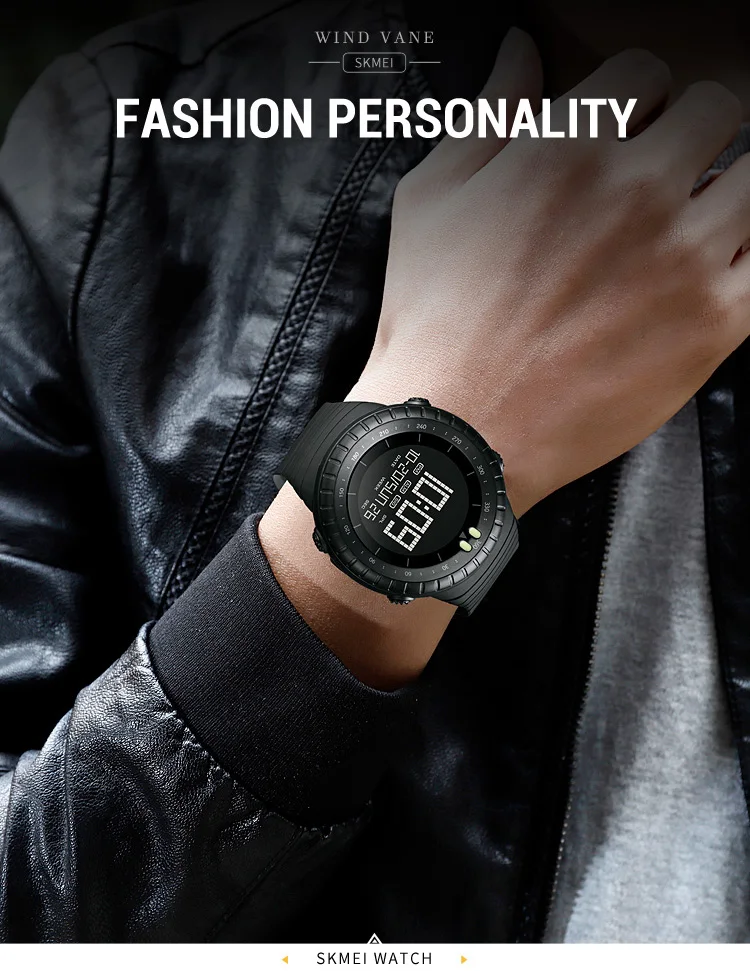 Часы наручные SKMEI мужские с хронографом, модные спортивные водонепроницаемые ударопрочные светодиодные цифровые в стиле милитари, черные