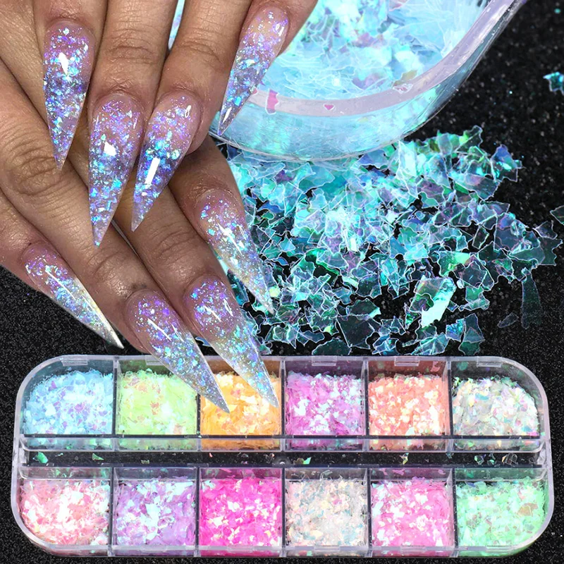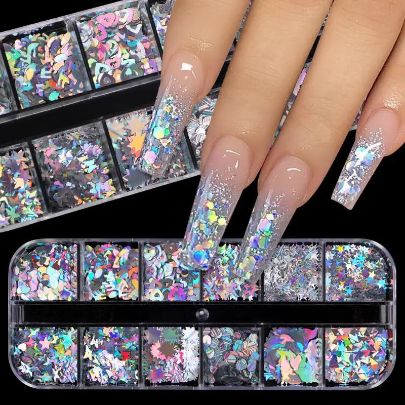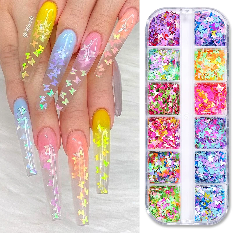 12 Маникюр для ногтей сетка блестки сердце бабочка размер Auroras Nail AB блестящие хлопья для дизайна ногтей блестящие аксессуары для дизайна ногтей