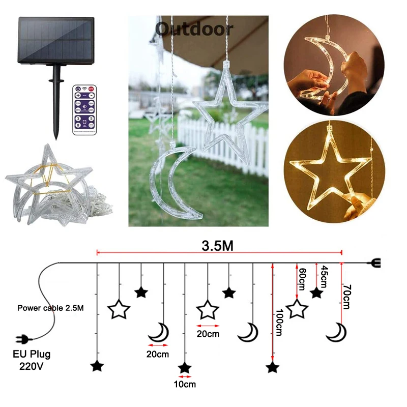 Водонепроницаемое украшение сказочных огней широко используется 】наши водонепроницаемые гирлянды с солнечными лунами и звездами определенно являются хорошим выбором для наружных зон, украшения для домашнего декора сада, праздников, дней рождения, свадьбы, других вечерних вечеринок и торжеств. Он может украсить ваш патио, сад, задний двор, газон, балкон, крыльцо, входную дверь и многое другое. Может использоваться как солнечный Балконный светильник s, солнечный забор светильник, солнечная завеса светильник s. Это принесет вам много комплиментов, полностью отличается от прошлого!