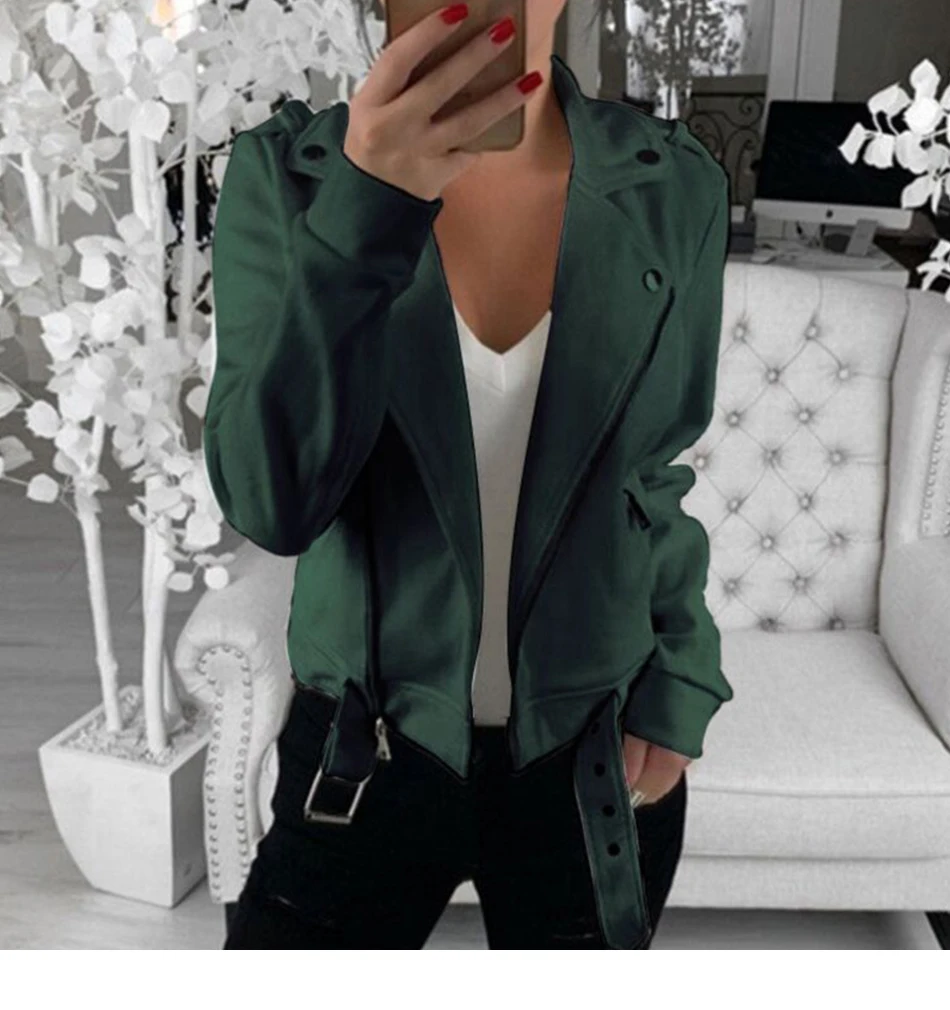 Осенняя Женская куртка, облегающие куртки на молнии с отложным воротником и длинным рукавом, Короткое женское пальто, женские куртки 2019