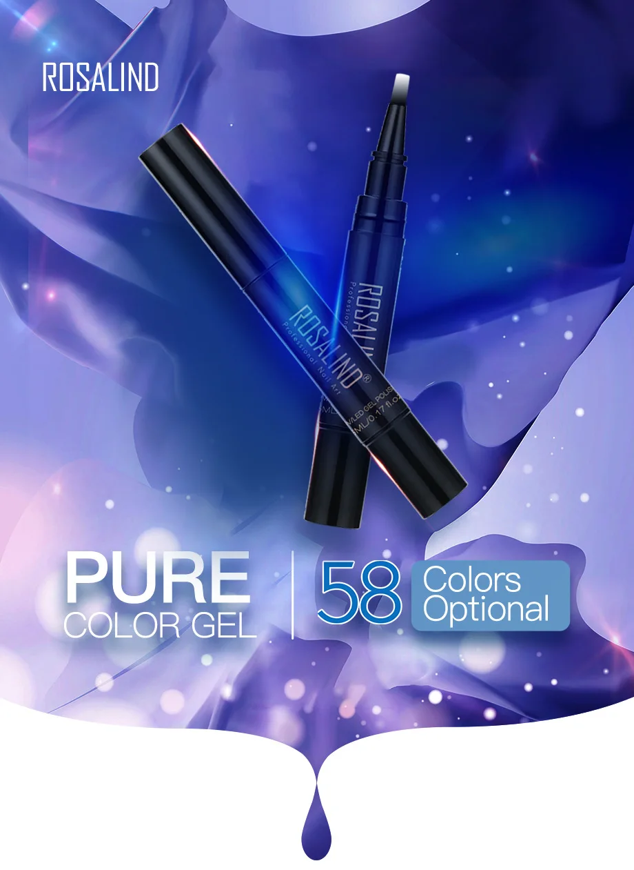 Гель-лак для ногтей ROSALIND в виде ручки, 58 цветов, базовое и верхнее покрытие, Гель-лак для Светодиодный Ной УФ-лампы, легкий в использовании Гибридный гель, удаляемый замачиванием