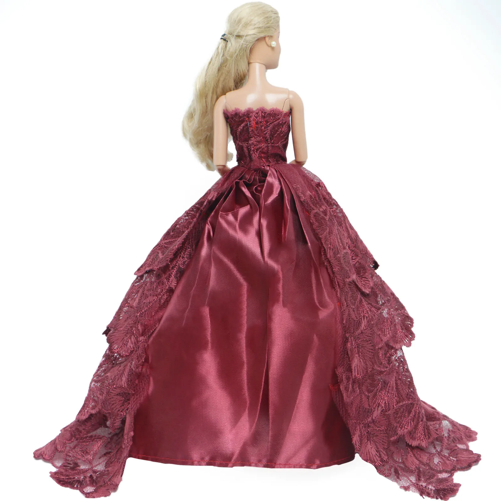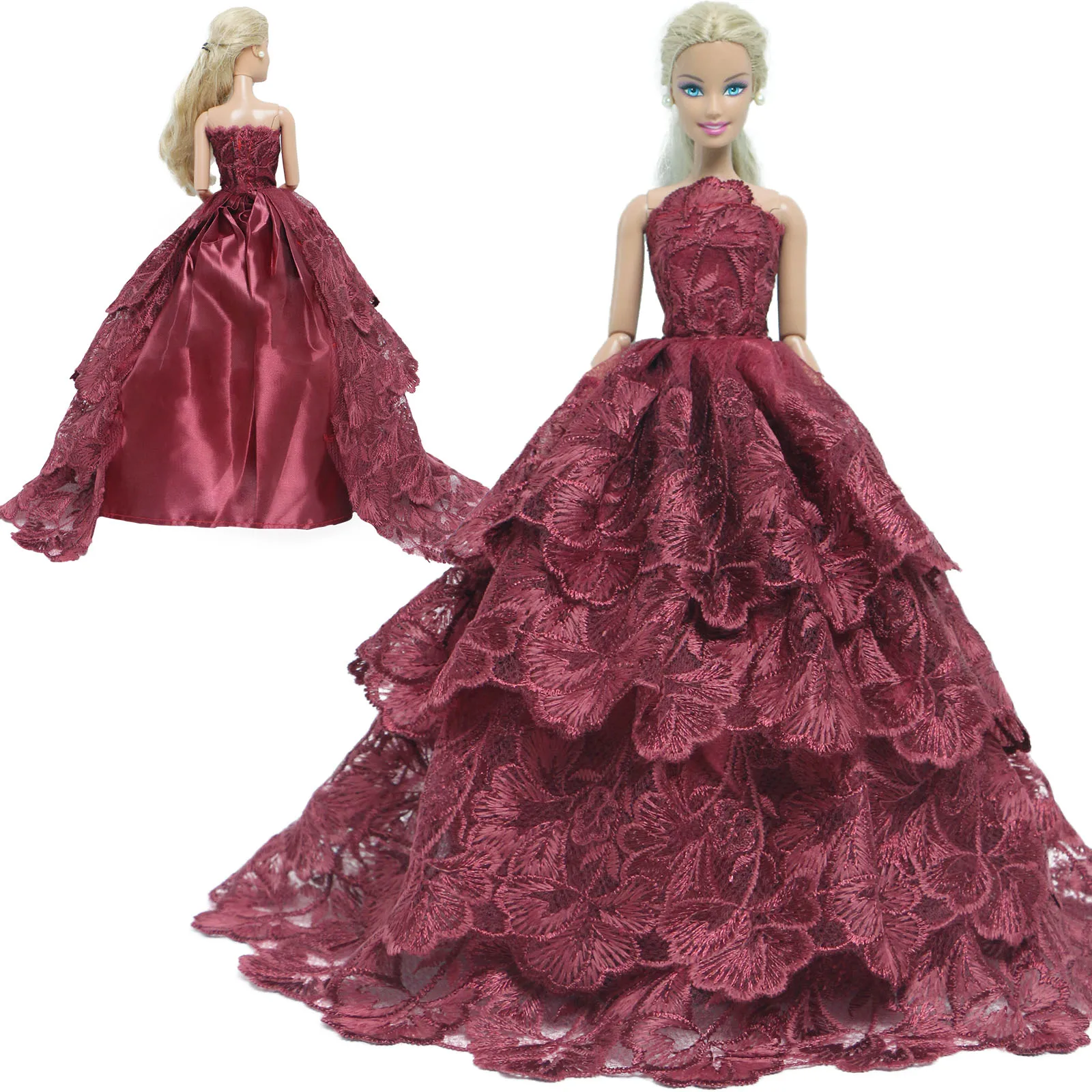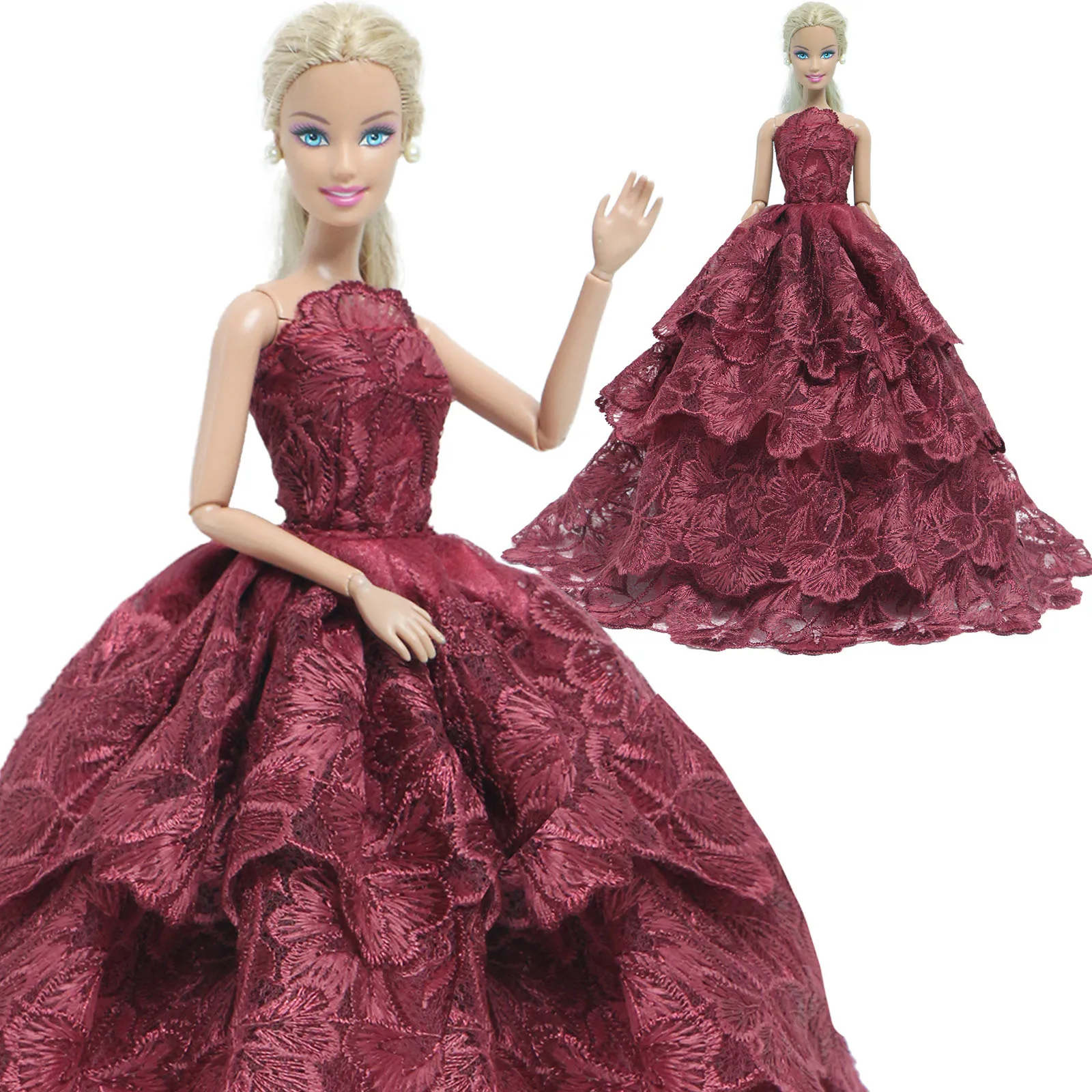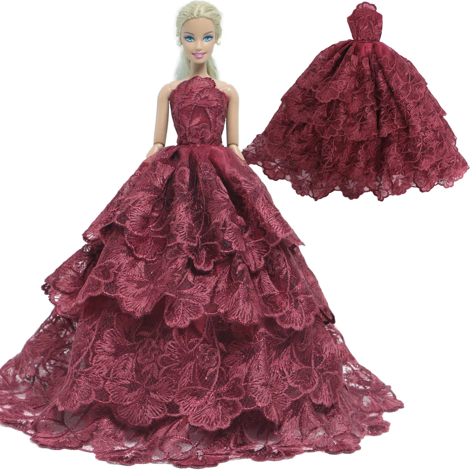 Платье для куклы BJDBUS, Красное Кружевное вечервечерние бальное платье, юбка невесты, аксессуары для кукол Барби, детские игрушки сделай сам