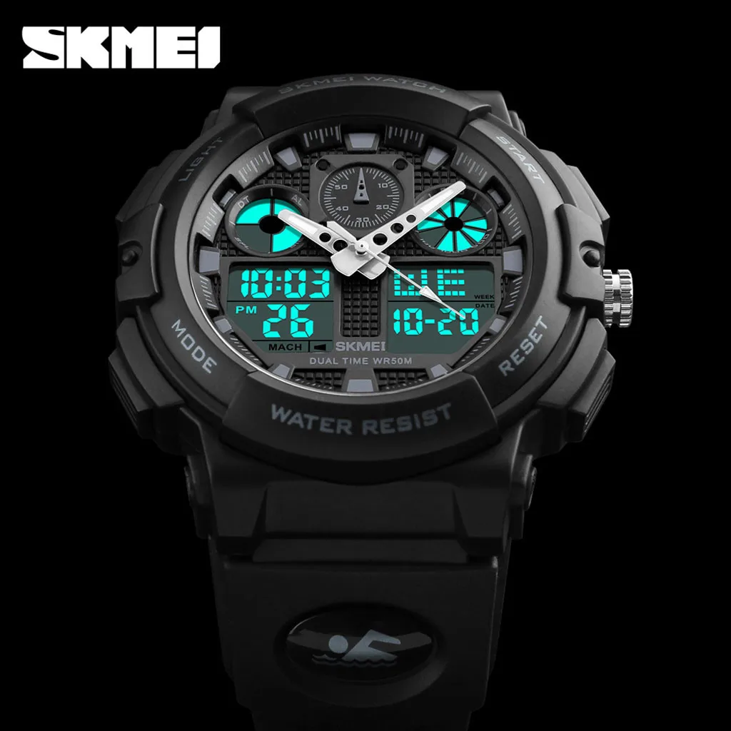 Часы наручные Skmei Мужские Цифровые, Роскошные светодиодные водонепроницаемые спортивные с большим циферблатом, будильником, календарем, 2021