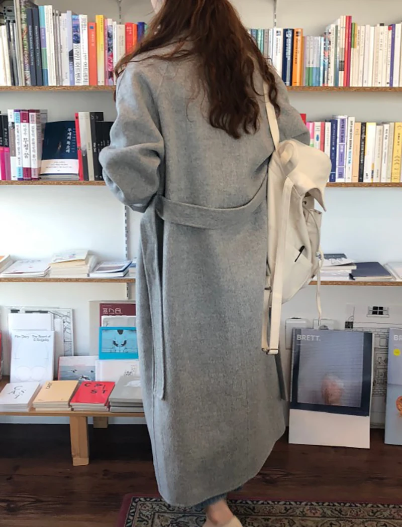 Женское шерстяное пальто, элегантное утолщенное длинное пальто серо...