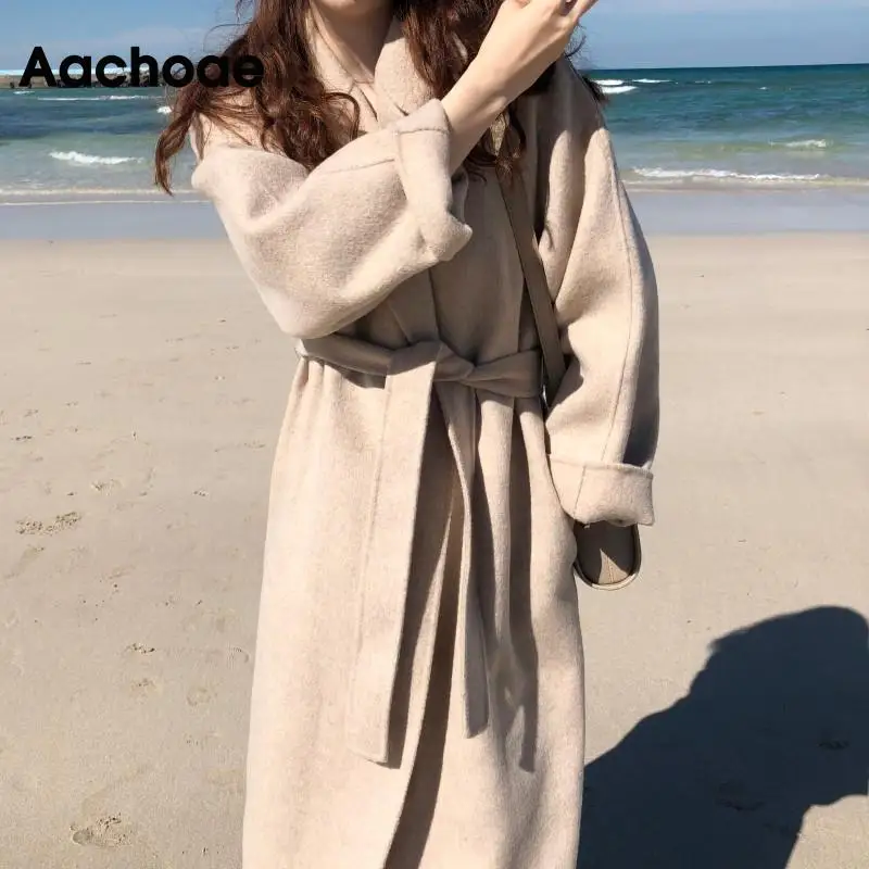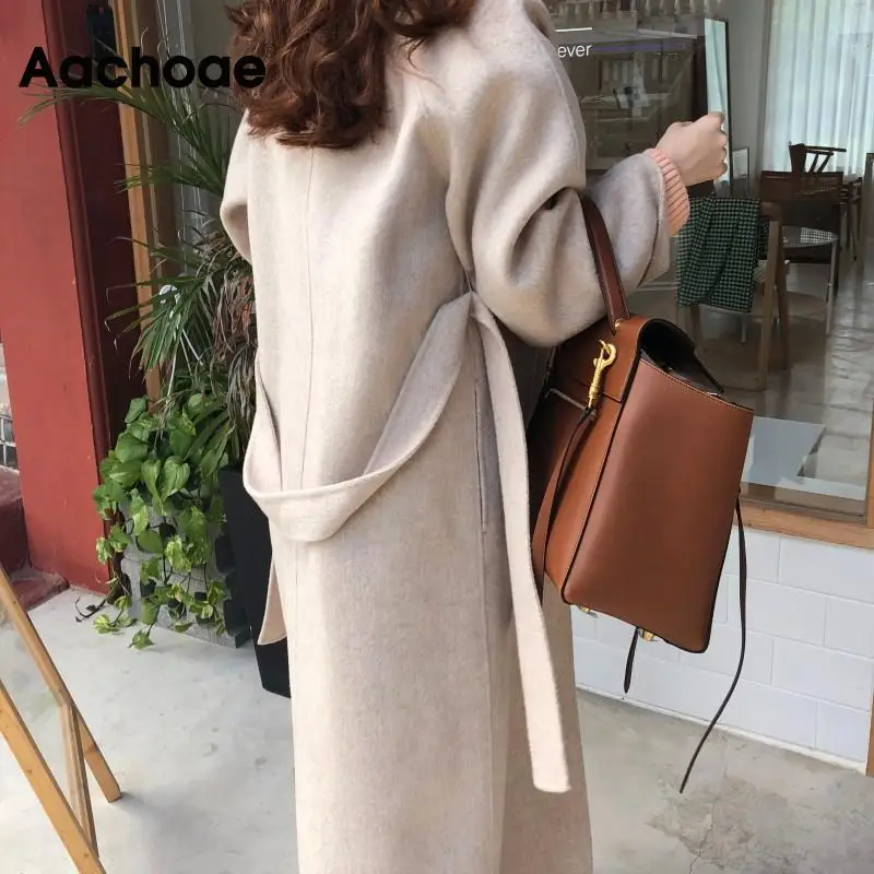 Новое Осеннее женское элегантное шерстяное пальто Ailegogo с отложн...