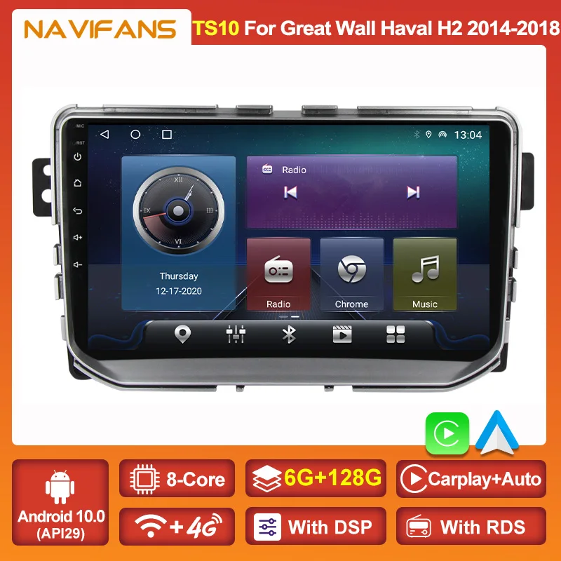 Автомобильный мультимедийный видеоплеер 2DIN, GPS 6 + 128G 8Core DSP Carplay для Great Wall Haval H2 2014-2018 Android 11