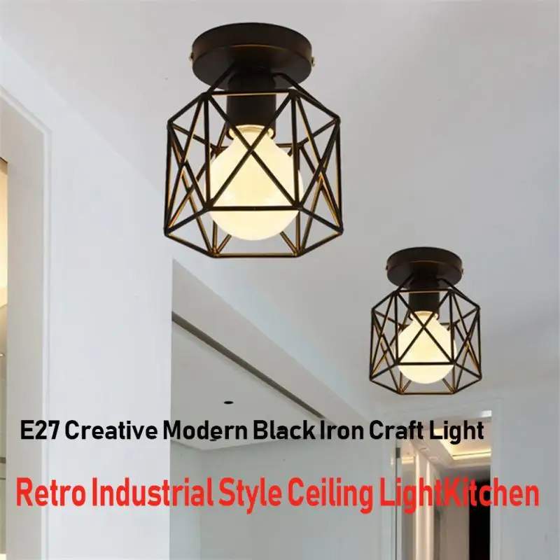 Потолочный светильник, 220 В, E27, ретро, промышленный стиль, креативный современный светильник из черного железа, для кухни, спальни, балкона, светодиодная лампа