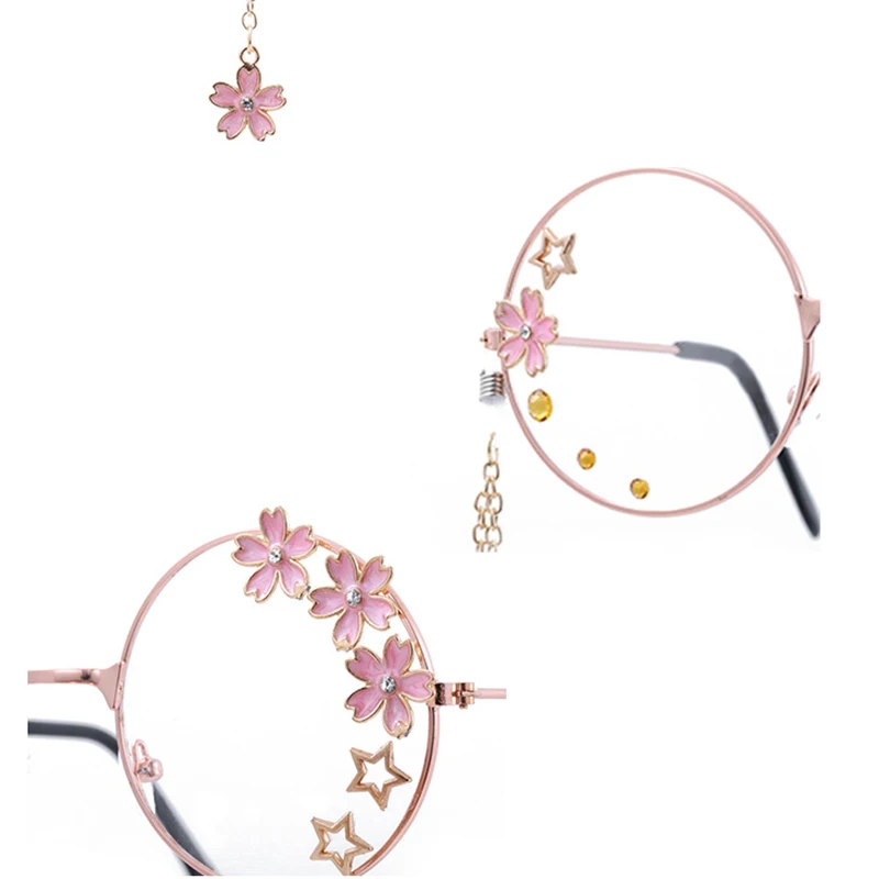 Милая оправа для очков Sakura с прозрачной оправой, женские круглые очки в стиле ретро, декоративные очки для косплея, очки