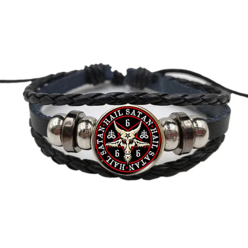 Черный классический браслет с пятиконечной звездой, плетеный кожаный браслет в стиле ретро с головой козы, мужской браслет, таинственные украшения с изображением сатаны, демона