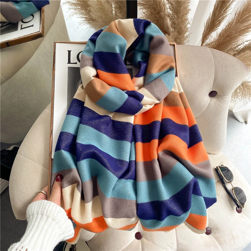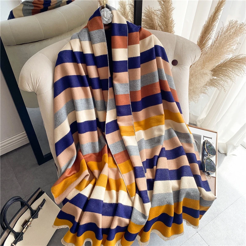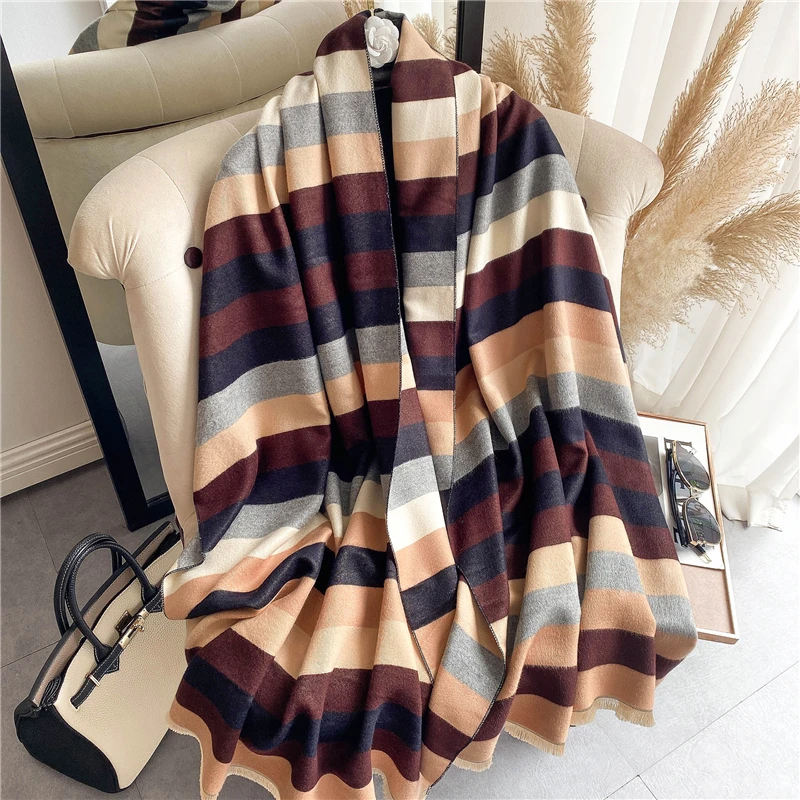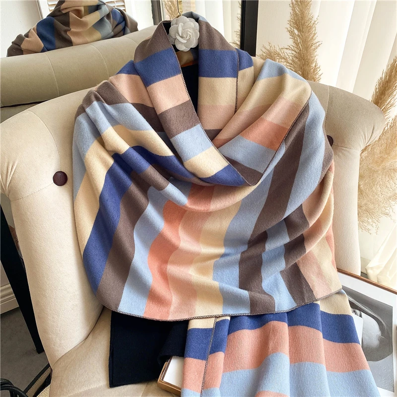 Женские дизайнерские шали из пашмиана с принтом, кашемировый шарф, зимний теплый женский толстый шарф, двусторонний платок, Женские палантины