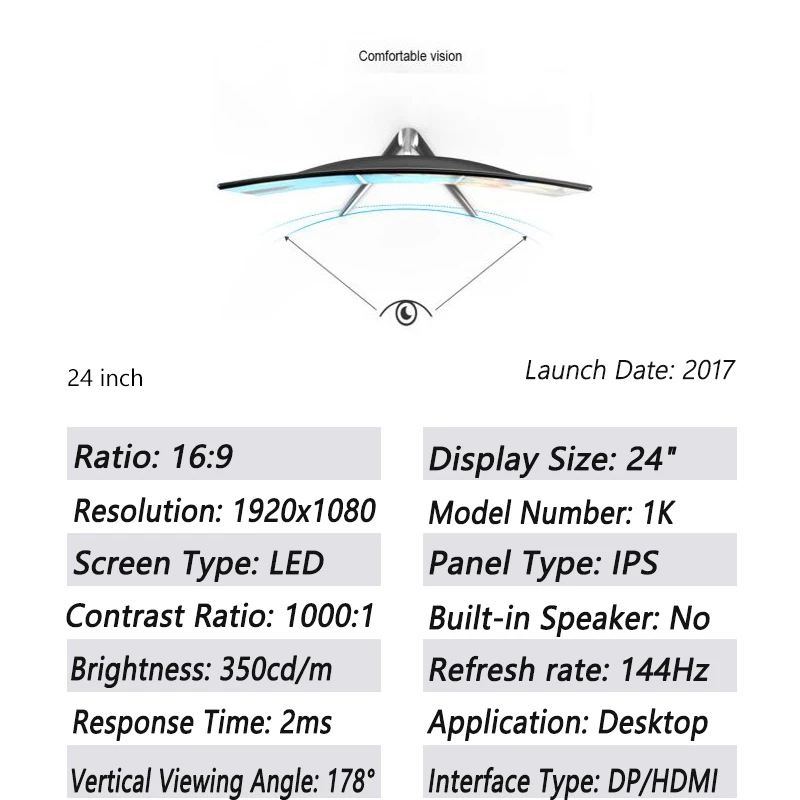 SILIJUN 24 дюйма 2K дисплей изогнутый экран компьютерный монитор ПК...