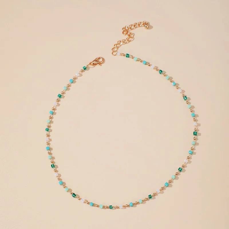 Женская цепочка на шею, чокер в стиле бохо, геометрическое ожерелье с квадратными бусинами, летние аксессуары
