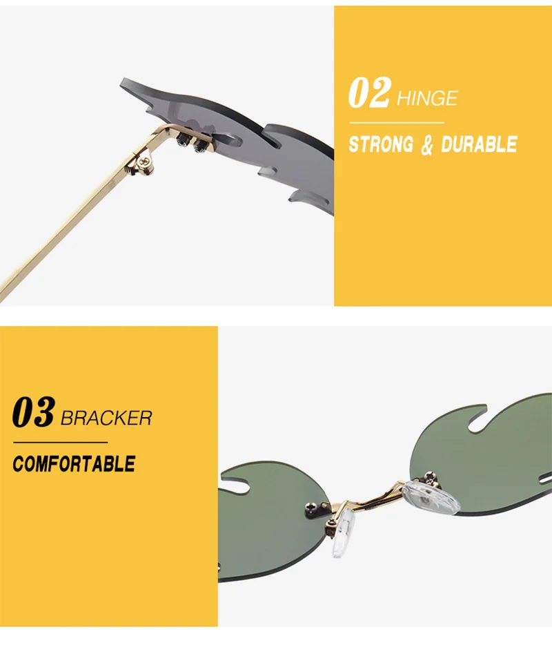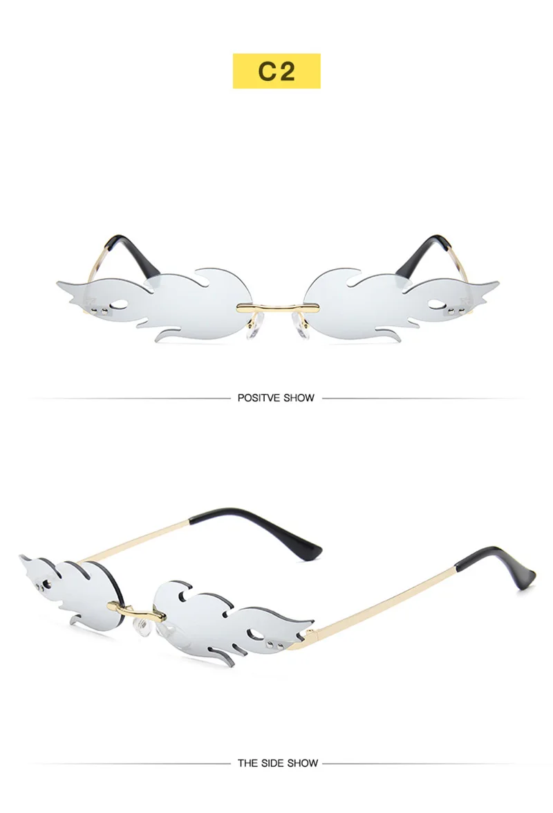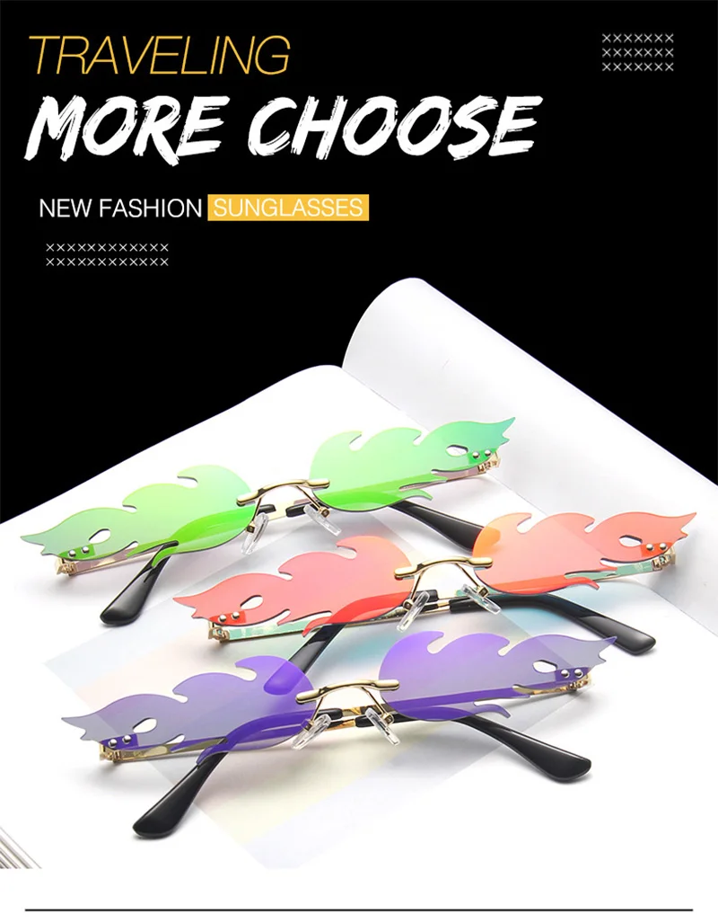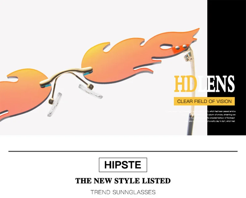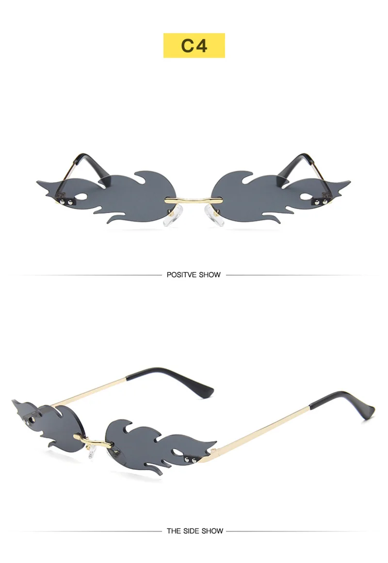 Забавные солнечные очки без оправы с огненным пламенем, женские вол...