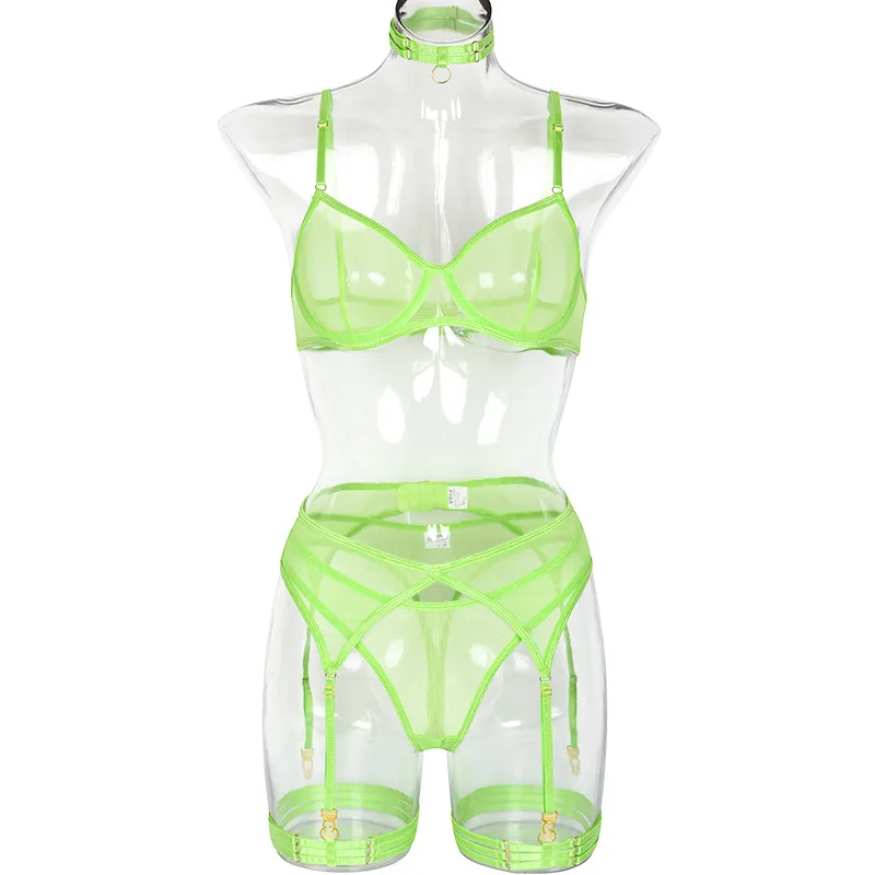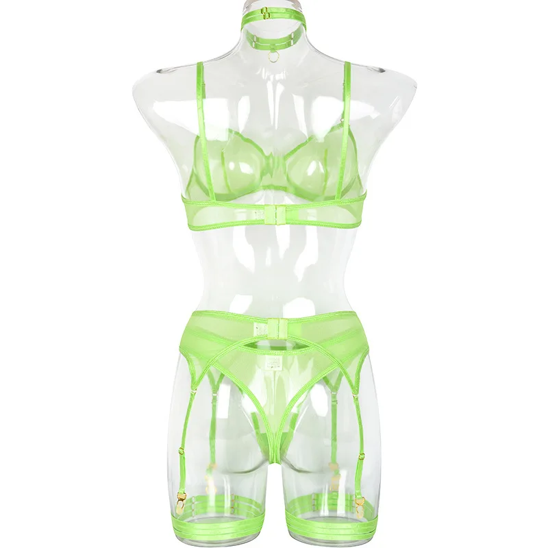 Женское нижнее белье, комплект чокера, прозрачное чувственное нижнее белье, эротический Собранный бюстгальтер на косточках и трусики, подвязки