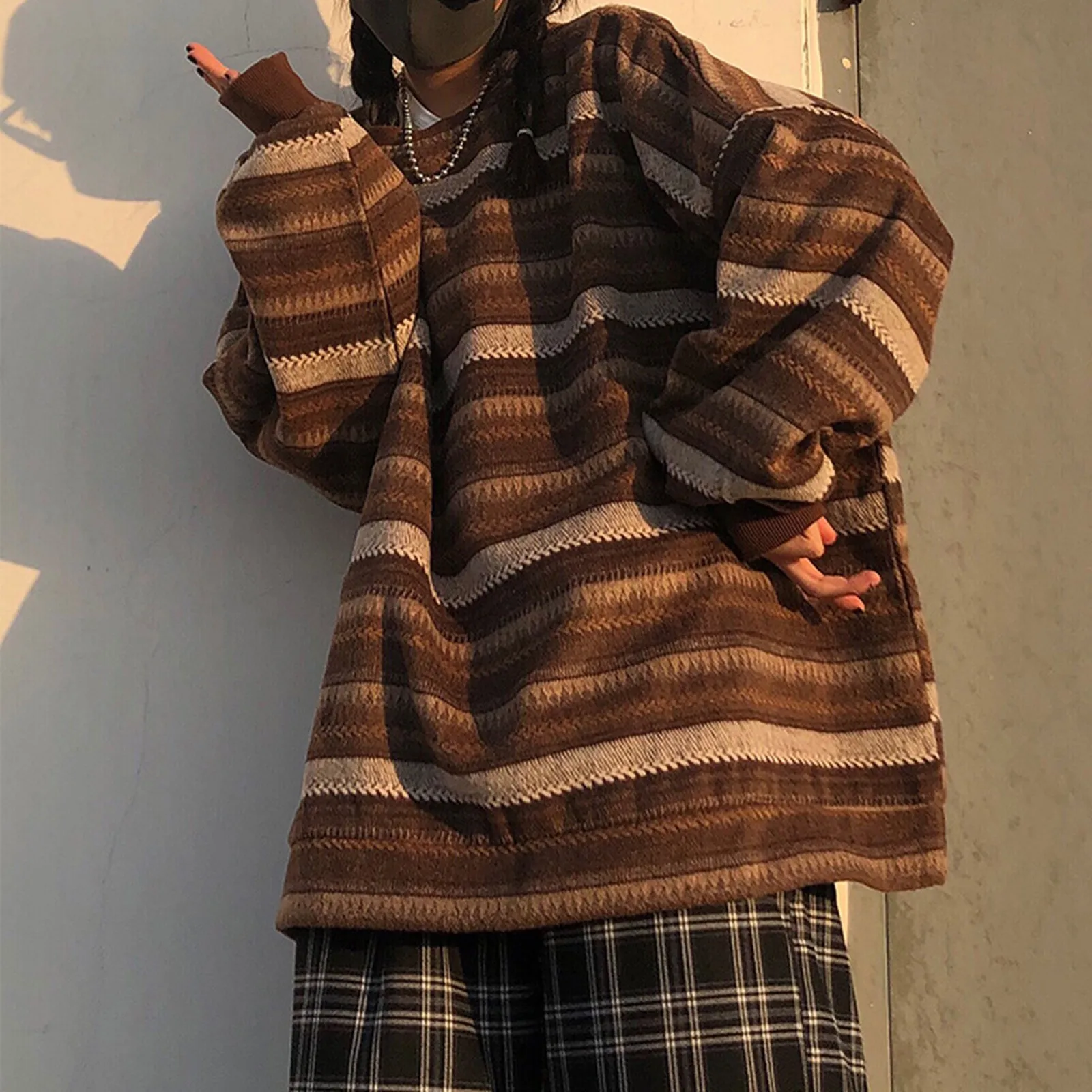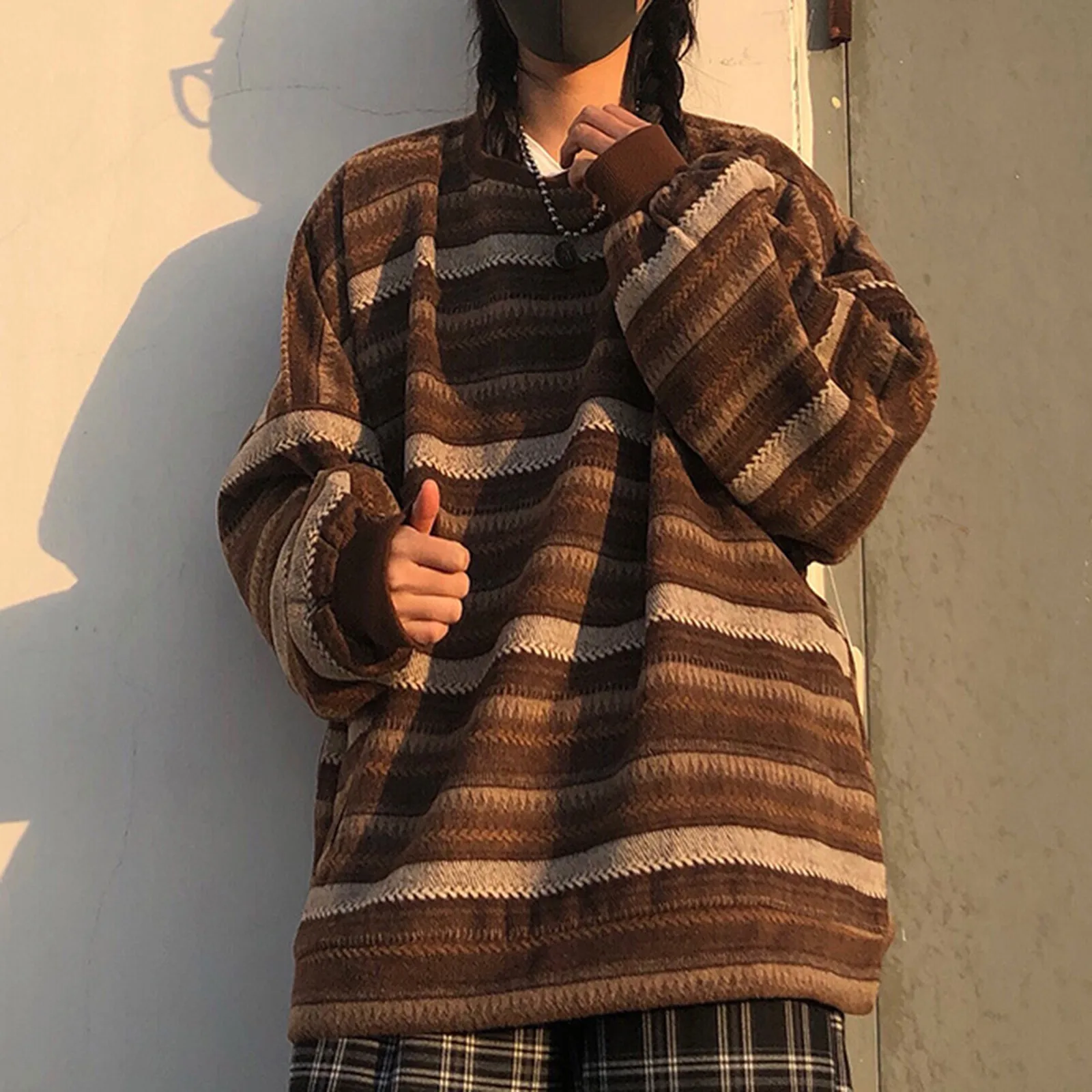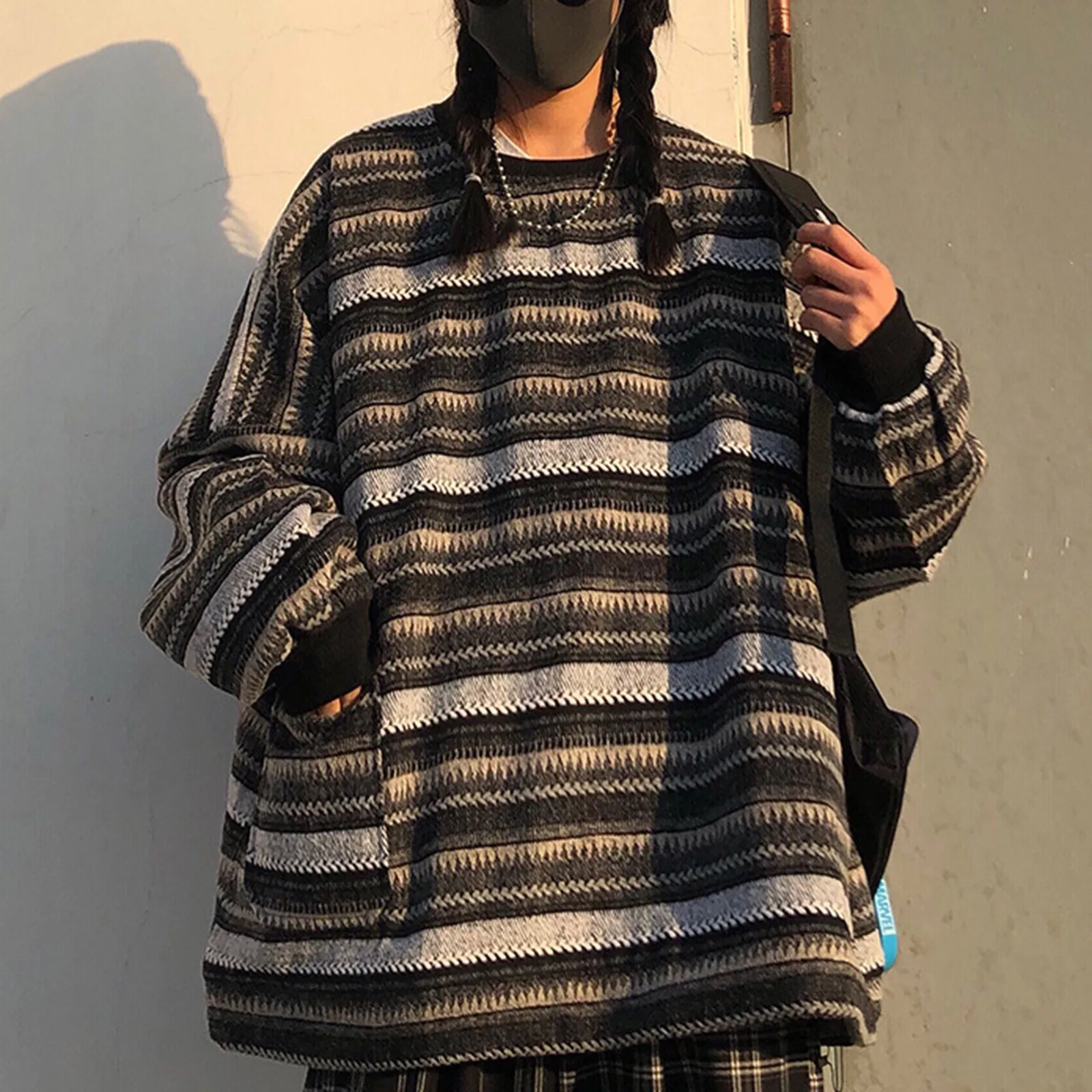 Особенности: повседневный, свободный, в полоску, нейтральный стиль, японский стиль, увеличенный дизайн, теплый и подходит для осени и зимы